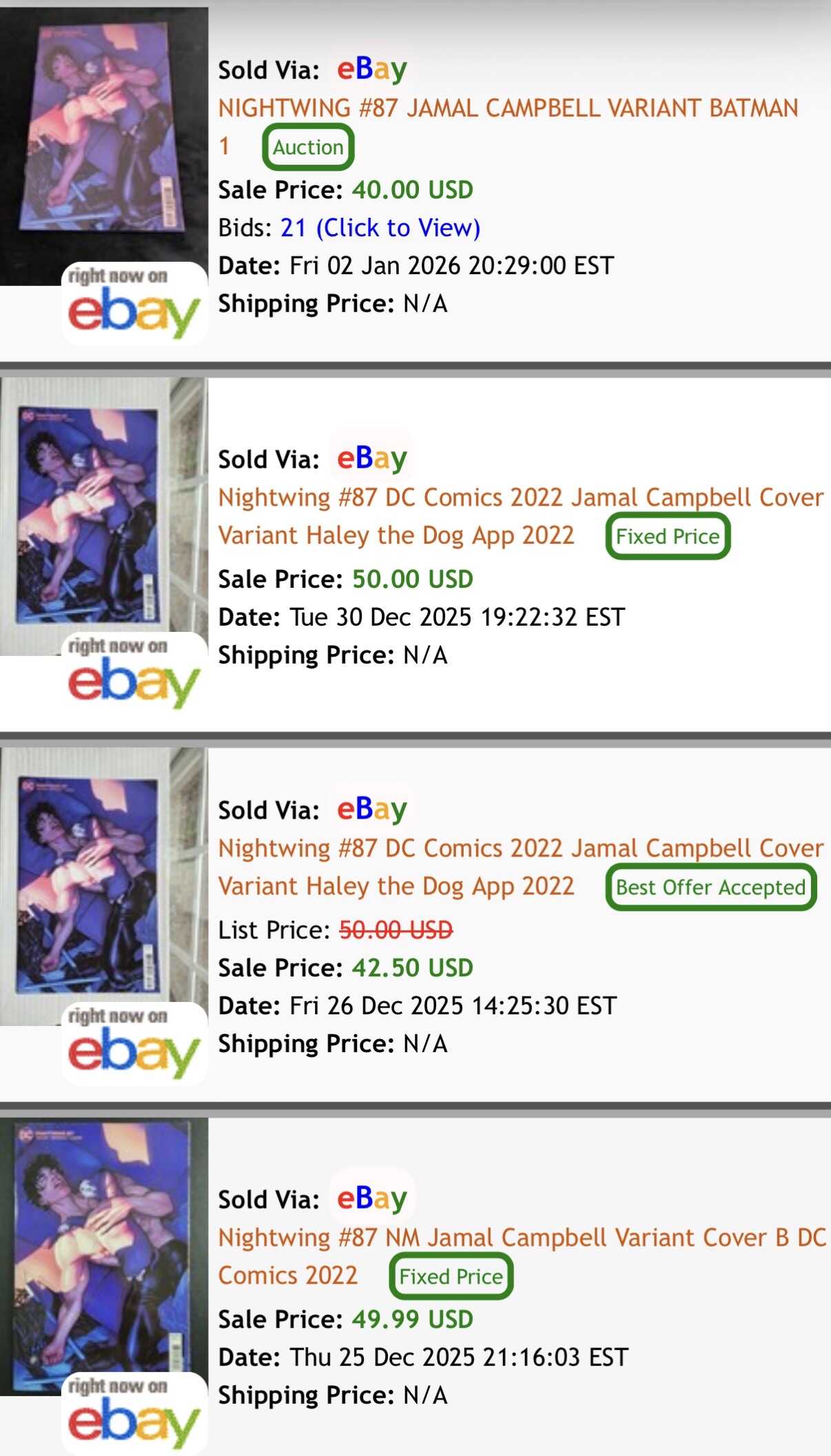 I’m basically tapped out of Nightwing books to sell, and I feel like I’ve cleared my whole metro area out. I’ve been buying Putri covers and Campbell covers when they are in dollar bins, but the current hot stuff is gone here, sadly.