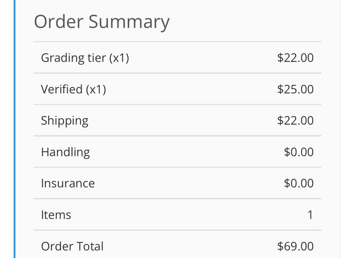 I don’t think it’s that. VSP is a flat $25 per signature. Maybe it’s grading, encapsulation and return shipping?