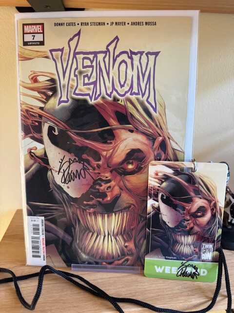 When I saw the weekend pass badge was Venom 7 art, I had to bring that book to get both the book and the badge signed by Stegman.