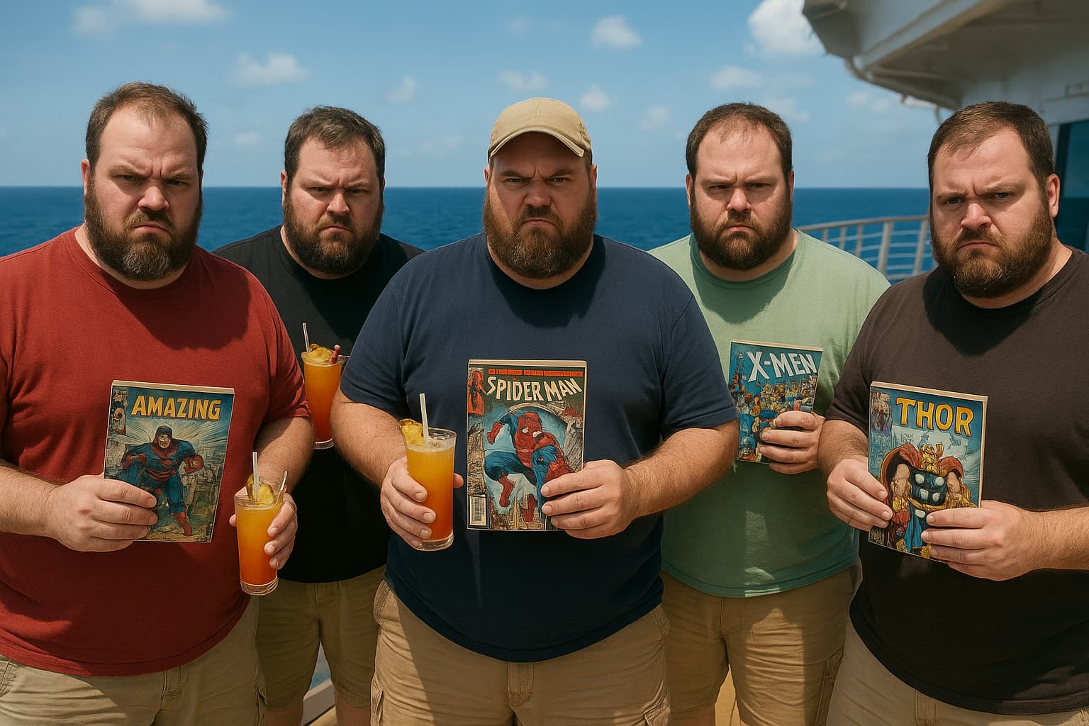 And a shirtless guy in very short shorts. I am guessing this was not a comic con cruise it was taken on.