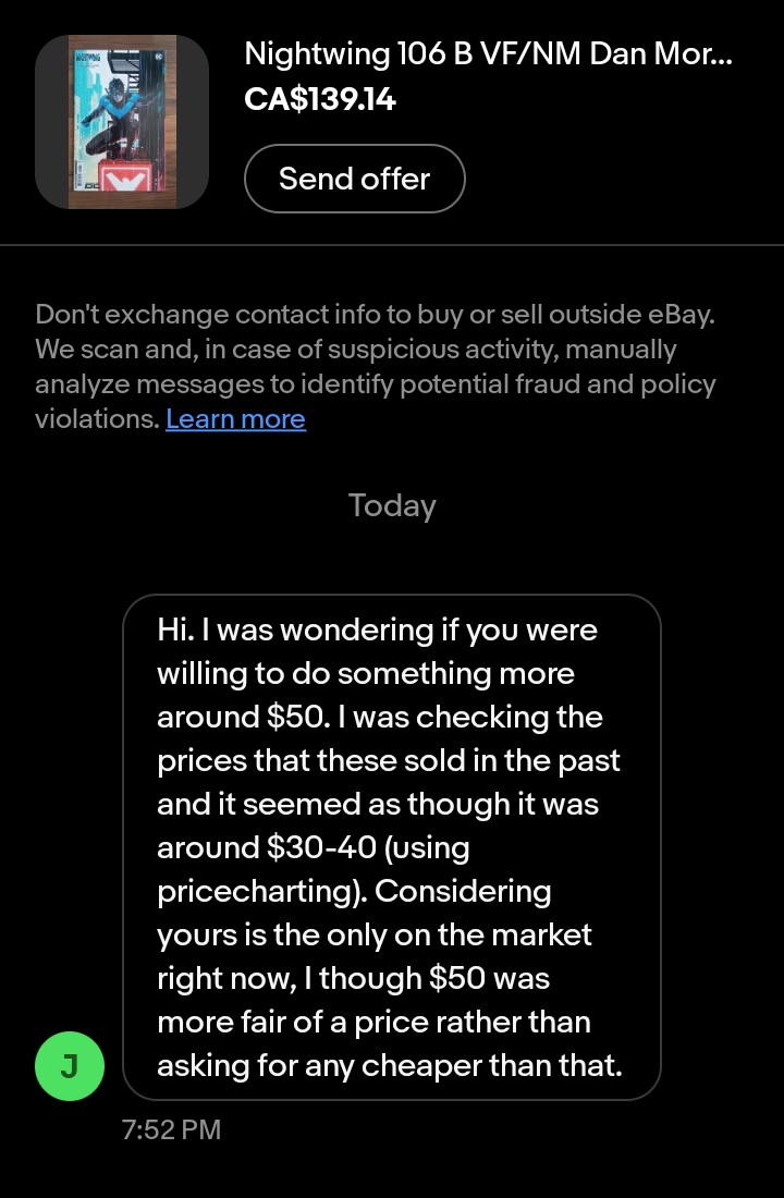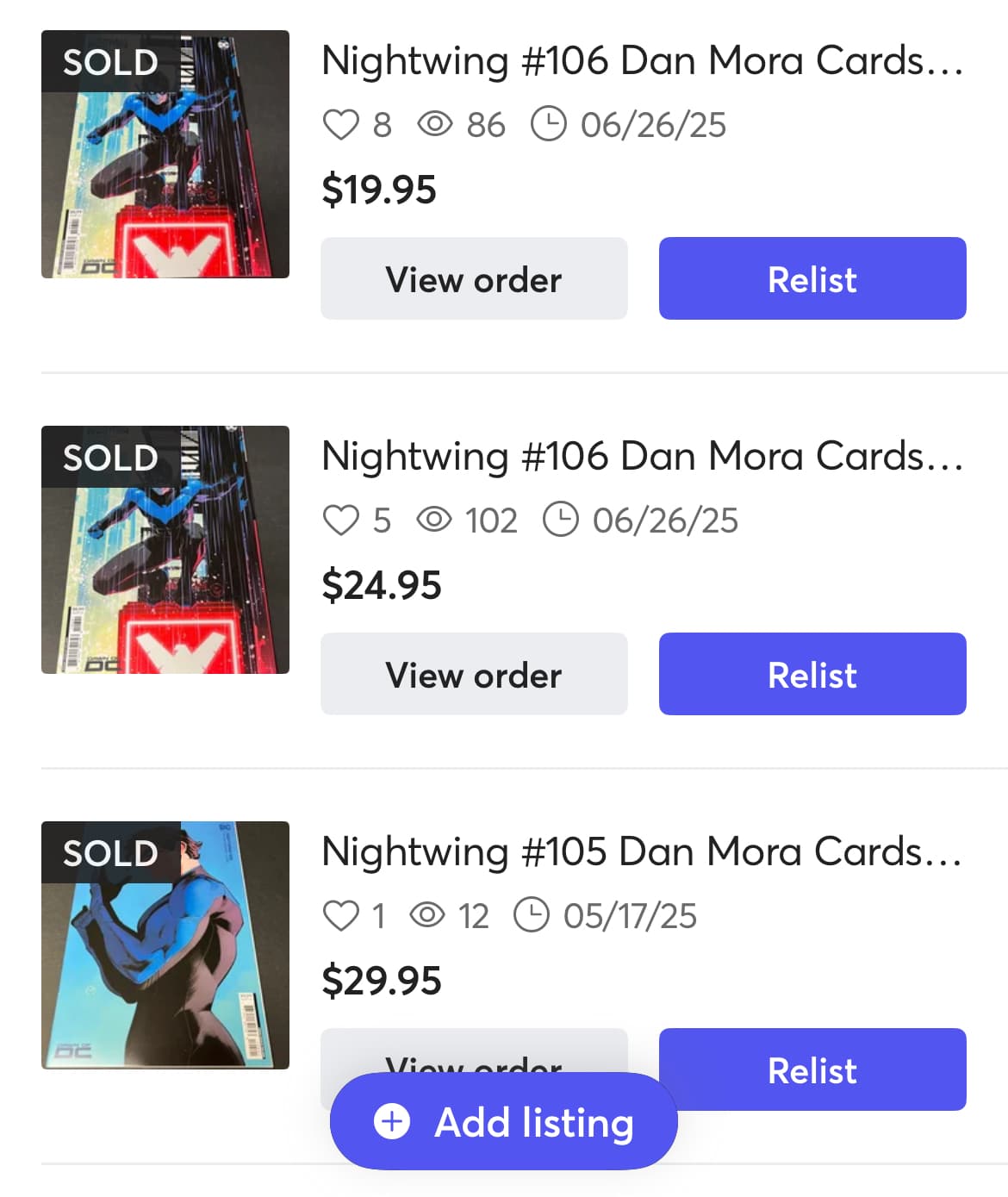 What would be your play here and how would you negotiate? Should I hold firm at $99.99? Not going to lie, I’m getting attached to some of these Mora Nightwing books.