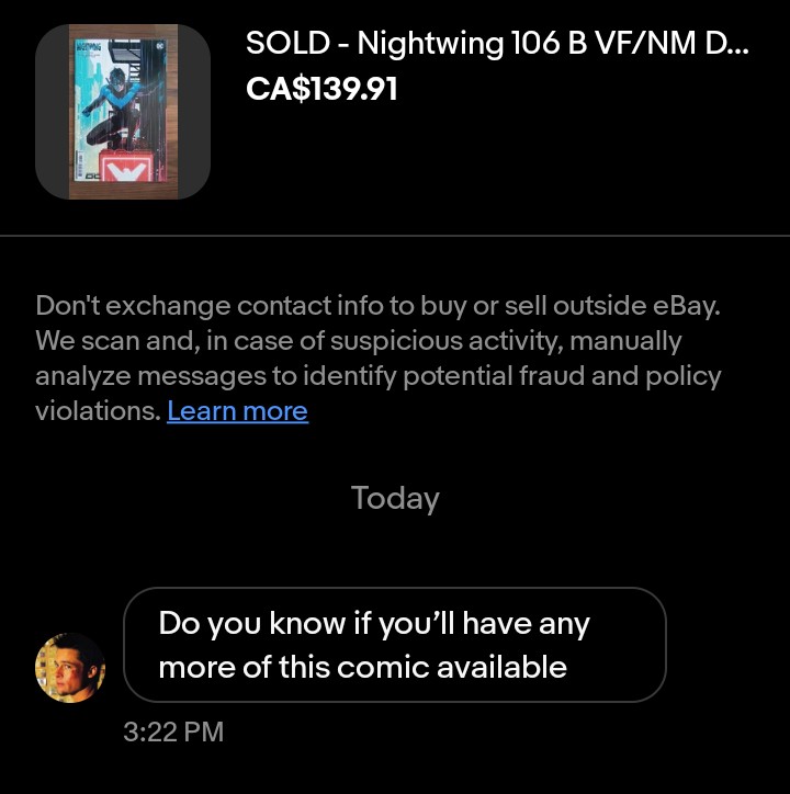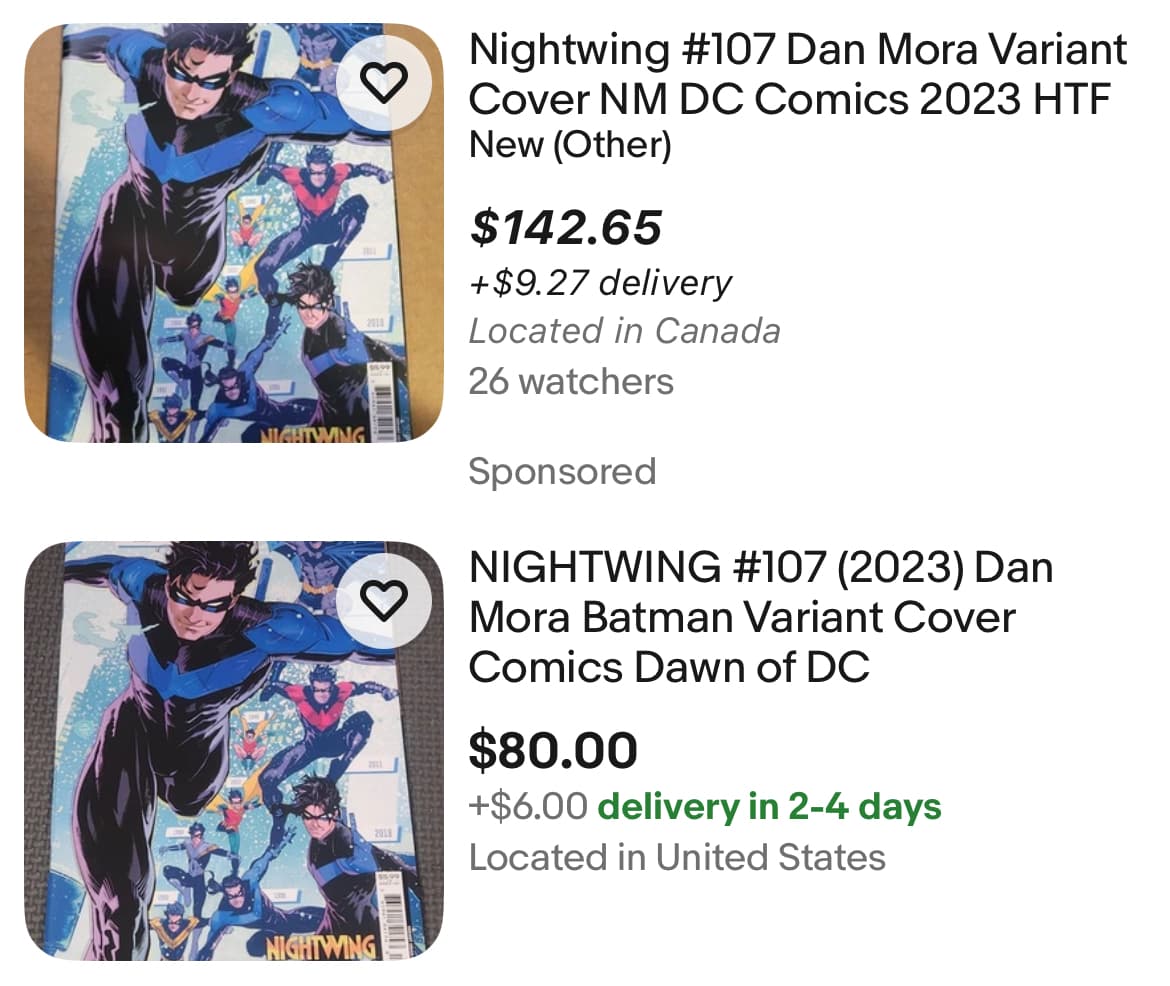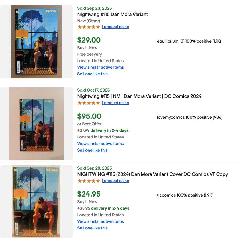 I actually feel bad for the Nightwing 105 seller. Ouch.