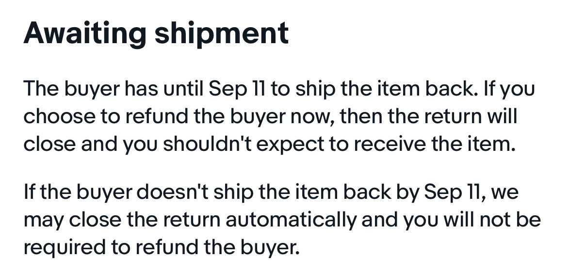 I hate that eBay gives people nearly almost a month to return an item after they have opened up a return. It is quite an annoyance.