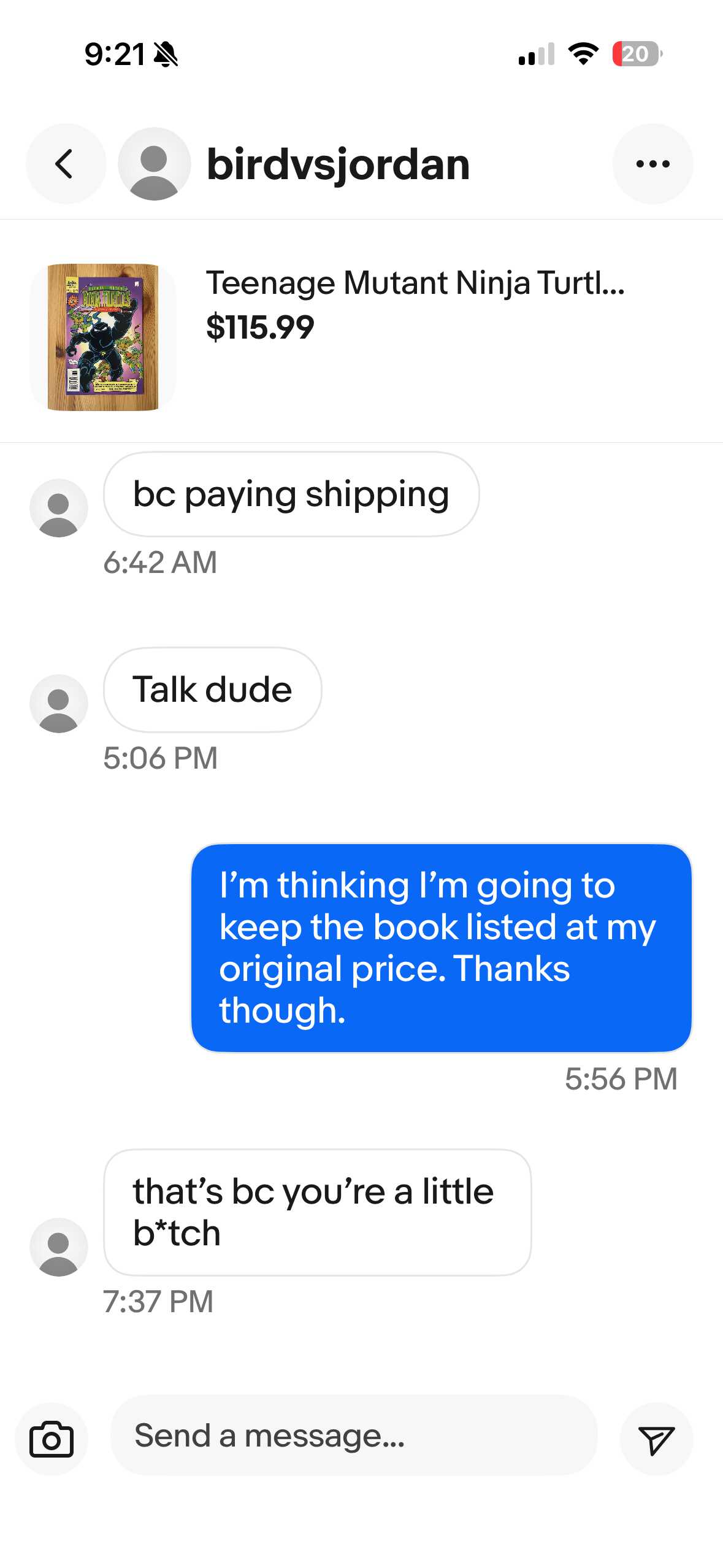 I love how people try to use the fact that they’re paying shipping as part of the negotiation. Meanwhile you’re offering a price from what I can tell is $20 below the lowest copy on eBay.
