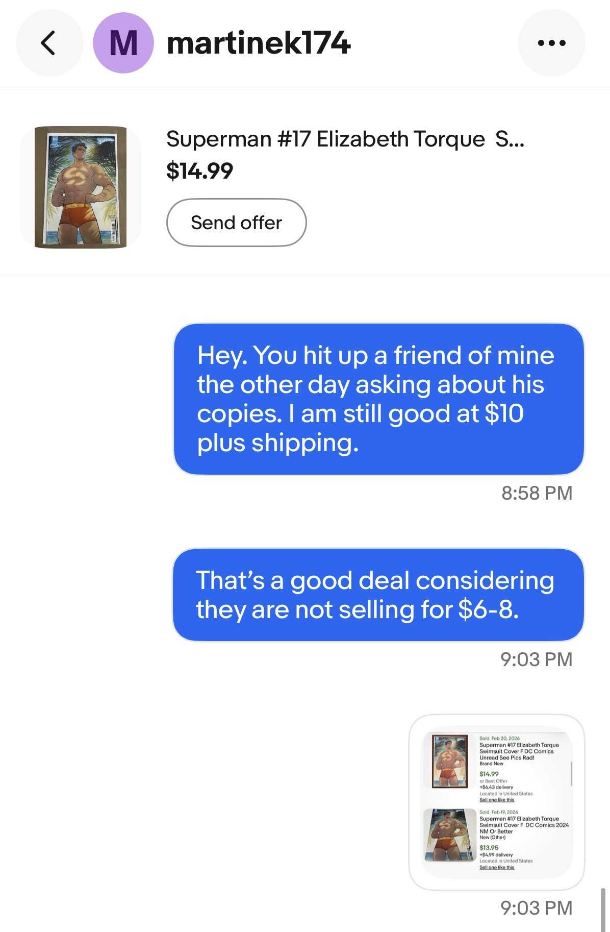 I told him I would still do the $10 plus shipping I offered him and sent him the recently sold copies.