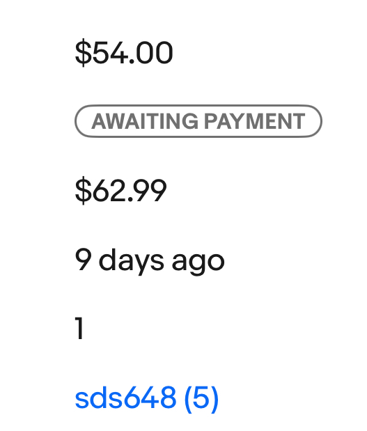 Doesn’t matter. It sold to someone else after he bought it and failed to pay. eBay leaves it online and love so someone else got it. F that guy. I am not doing layaway for people.