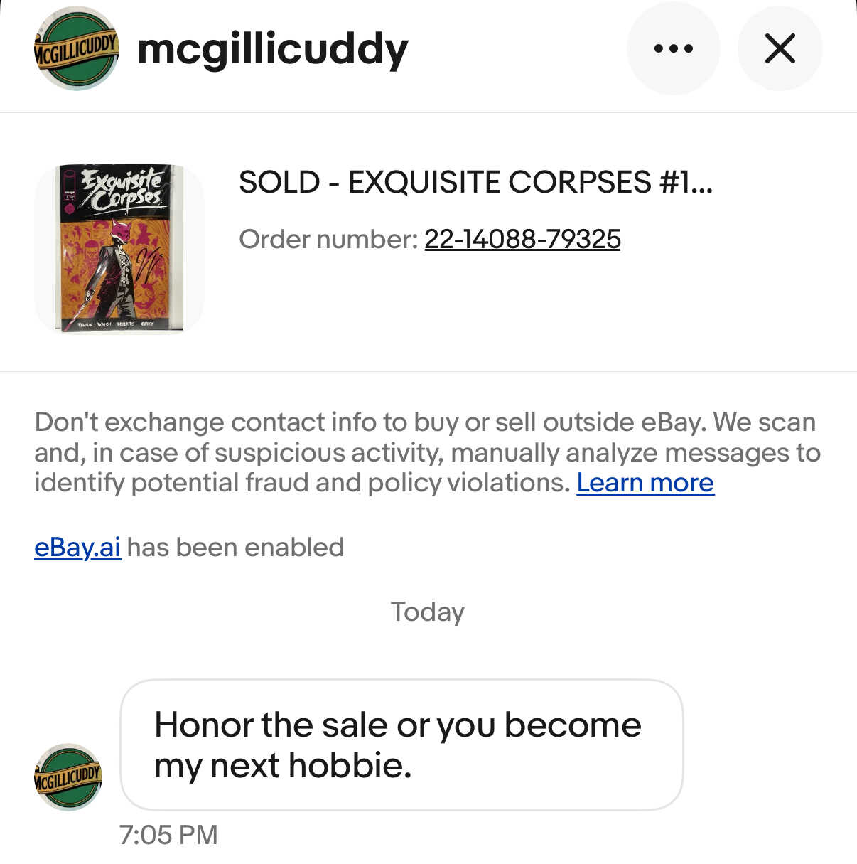 I just preemptively avoided this. Guy messages me before buying to ask some more questions about condition (which I appreciate). But then during back and forth messaging, comments about worrying about paying 9.8 prices for raw books came up. Mentioning “returning books” in two different messages was enough for me. Block. No sale. Not worth the chance. I feel relieved just dodging the bullet. If you want a slab that says 9.8 then go buy that. Don’t hassle my raws!!!