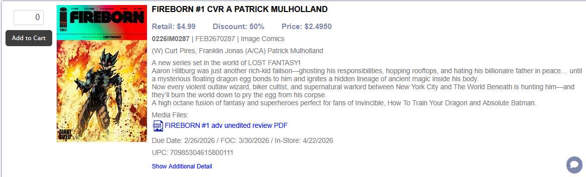 I feel like it is being slept on. Lost Fantasy is a fun read. Started off slow, but it got better by issue #3. Looking forward to Fireborn.