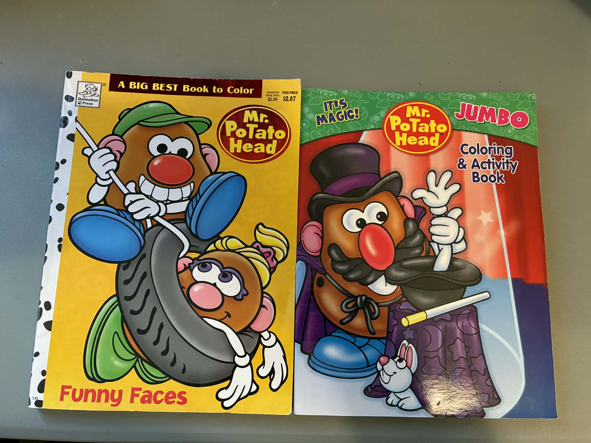 Went to a little toy show/comic show/fancier-than-a flea market (but still like that) event. Wasn’t much of anything I wanted to buy today, but sometimes you strike it big, and sometimes you just strike out. I did get two fun retro Mr. Potato Head coloring books for the kiddos to enjoy, but that was it. Pic: