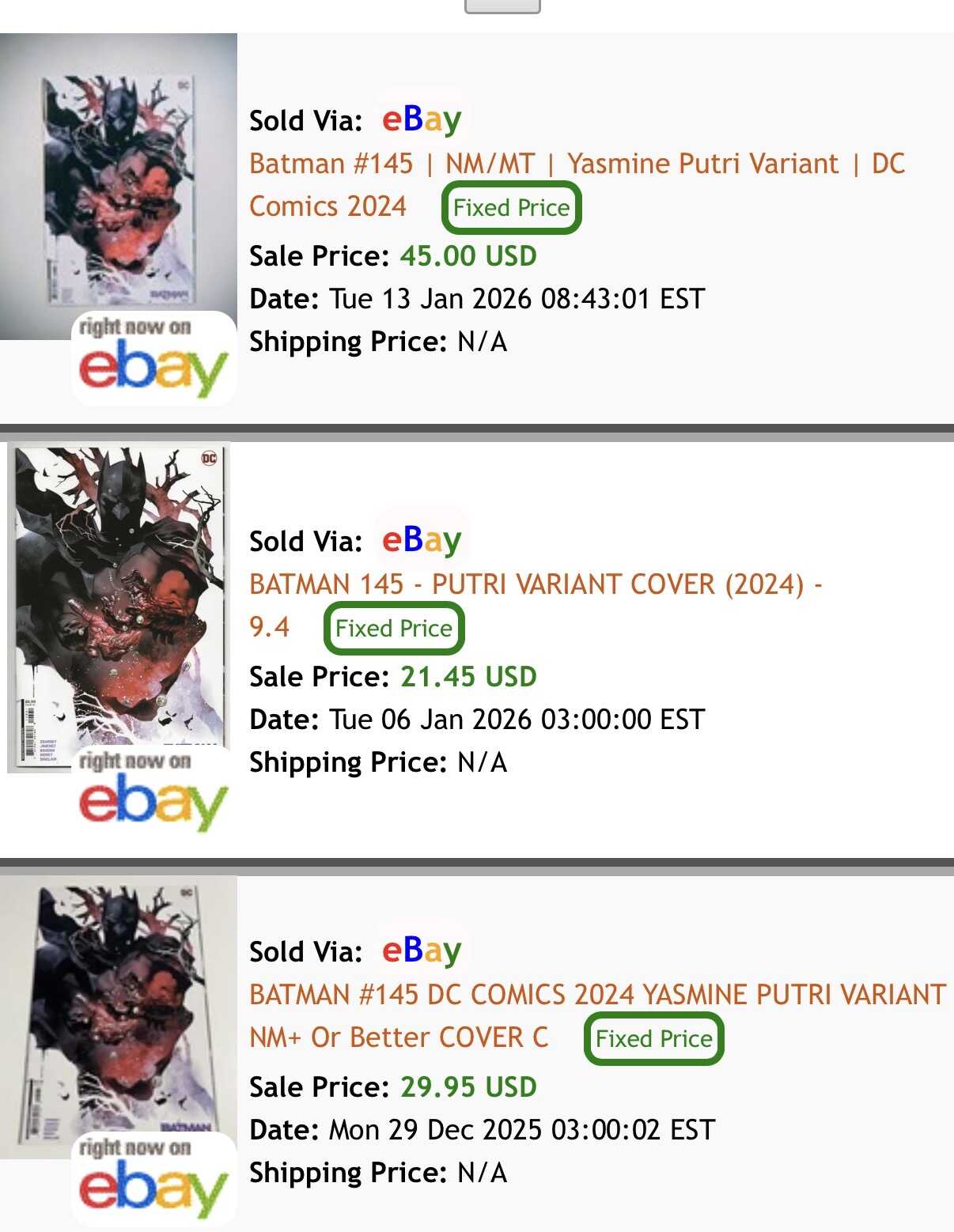 Batman 145 Putri appear to be a ghost on eBay now…