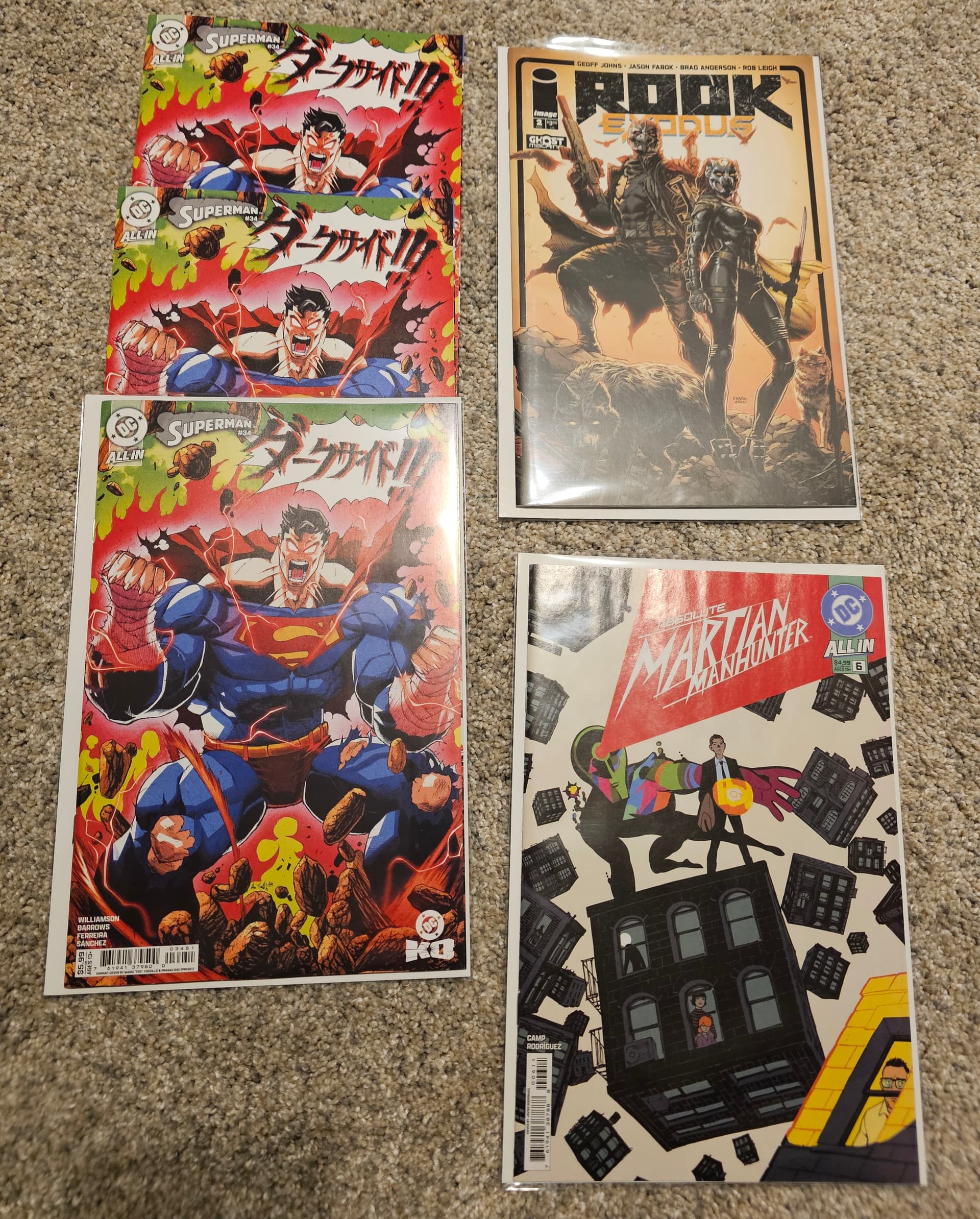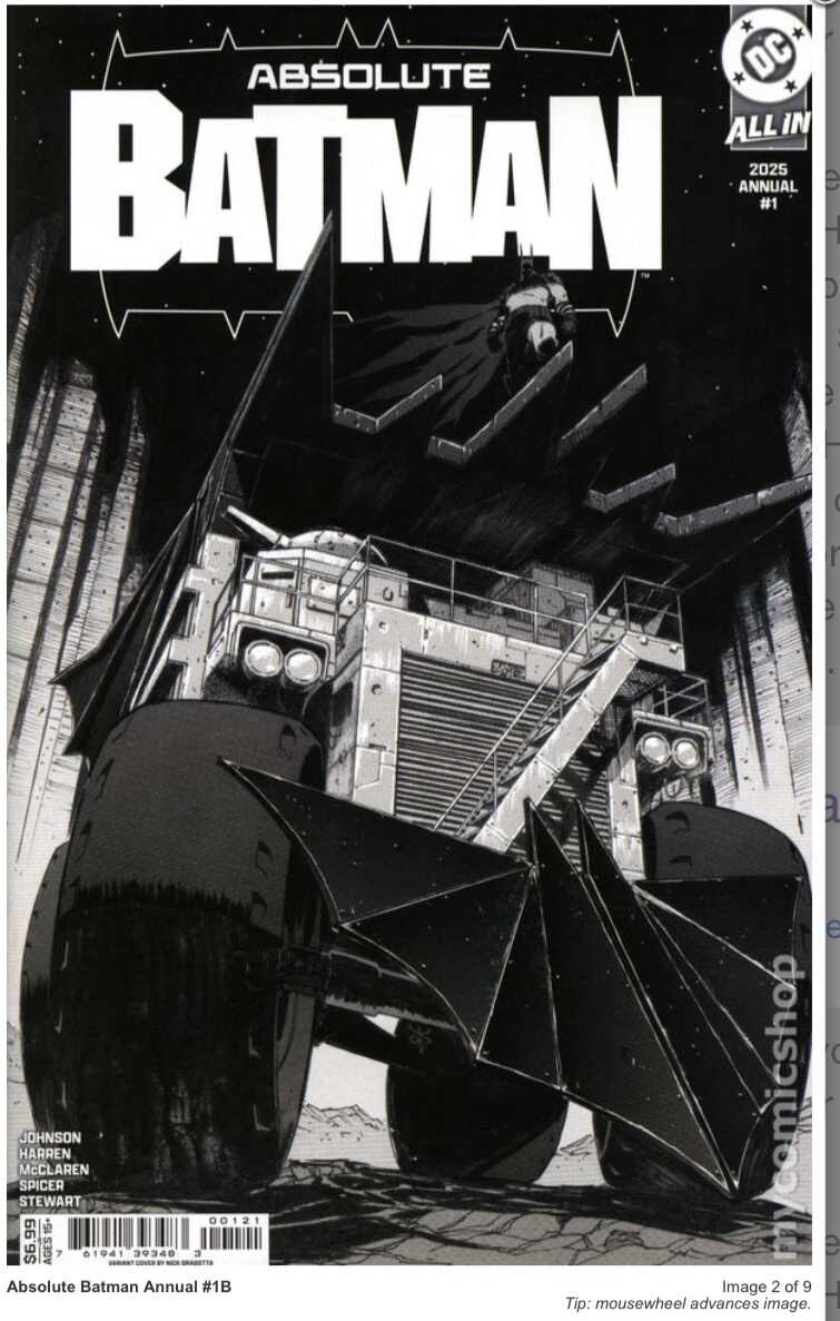 I got to the store and ended up spending some time there. The collection included a full run of Absolute Batman first prints plus reprints. The shop owner is going to send the first prints off for grading. He wants a 9.8 set he said. There was mostly newer DC stuff. Sadly no beefcake or Nightwing. Superman Batman Detective Wonder Woman books. Some Green Lantern. The Absolute Batman was the deal maker for them.