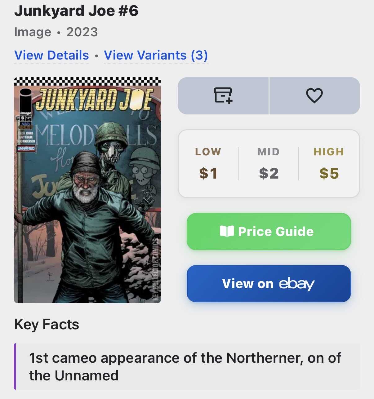 FYai - Just looked at the app…it has all issues as $4-$5. Which they haven’t sold at for years. Another reason they sit in long boxes and get passed over if people only are looking at KCC when bin diving.