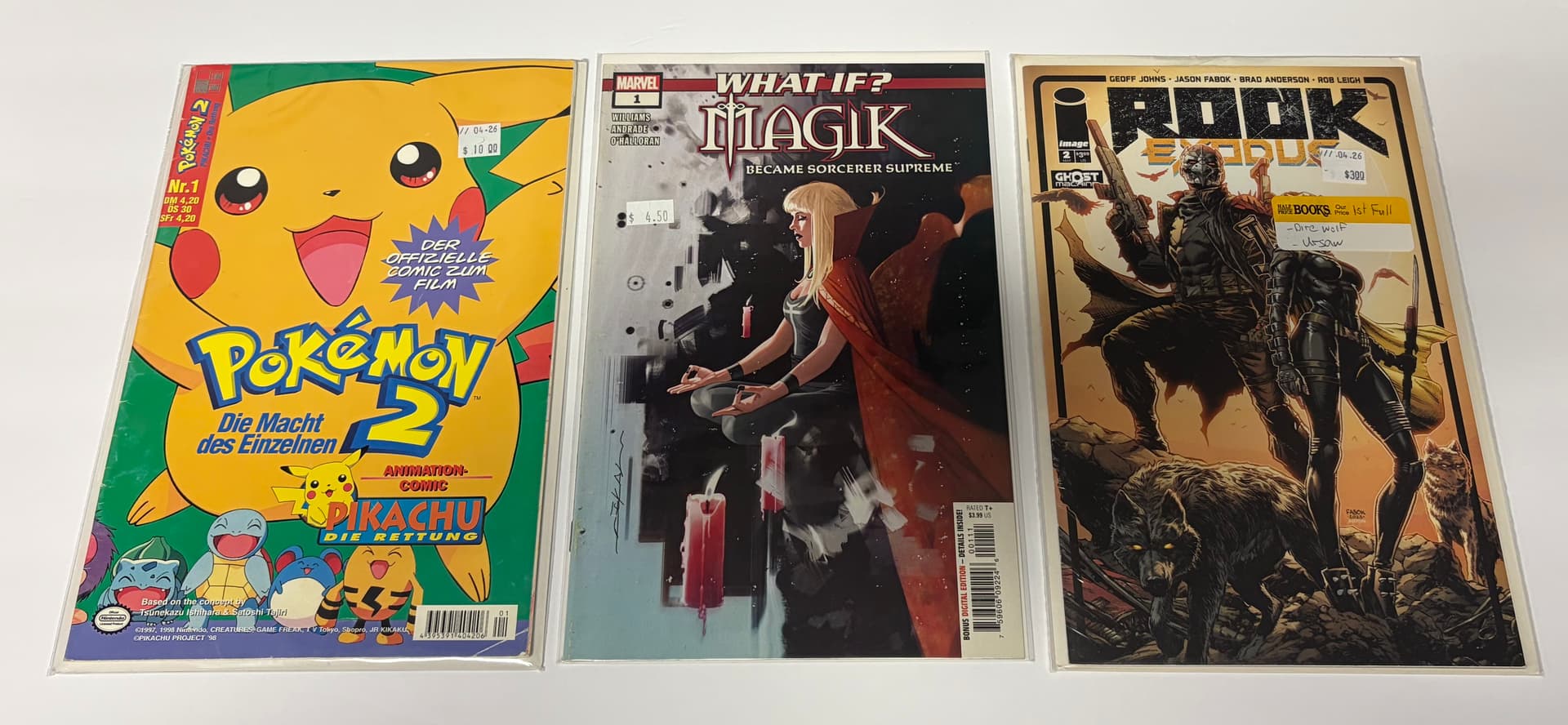 The book I’m still trying to figure out why it is is the Oimemon 2000 movie adaptation, which is in German. Never see. This before…and none listed on eBay or MCS. So for $10 figures I’d grab it. It’s gotta have some value as an early Pokemon.