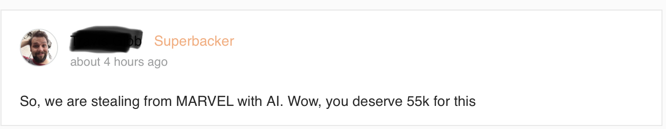 -Possibility of receiving a copyright infringement by Marvel potentially losing our funding and you losing your money.