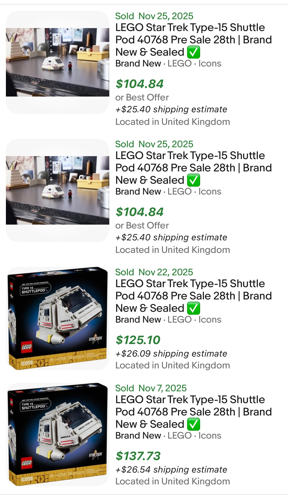 I just want the mini figs and shuttle craft. So I’m wondering what a crew-less enterprise would fetch in eBay…