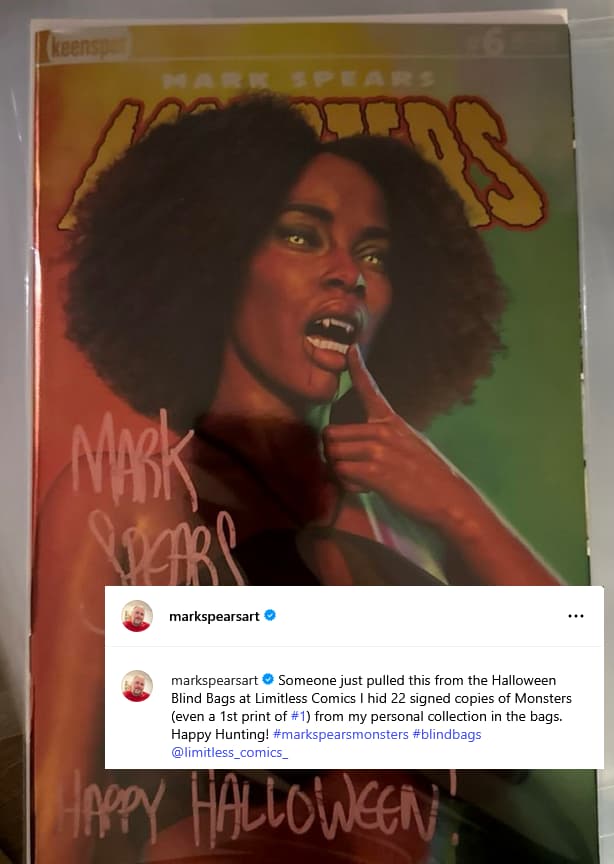 Just remember if the Monsters line keeps going, keeps gaining popularity and does get a Netflix or MAX type live action series a lot of these comics will be in even more demand. If as a collector you aren’t all that happy with how the product is being handled that is one thing but if you are looking for potential profit, the more popular covers and the more rare issues will more than likely take a good jump in price when a show is released. Because of the art and theme there is still potential for organic growth as well and a good chance profit can be made. For me, I like the art and horror theme so I am also collecting them, but I have no problem making a few dollars on the extras of this series I will have, the Kickstarter when it eventually gets here and of course the first series. There is always a chance the popularity for all things Mark Spears will start to fall flat, but I think the train will keep running for a little while longer.