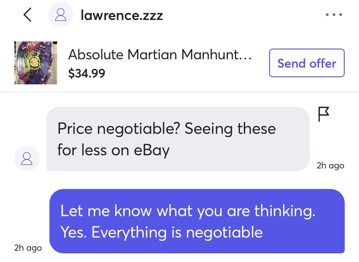 Totally reasonable ask. I price things on Mercari higher than on eBay because of the coupons and credits they give out. So this guy saying he can find it on eBay cheaper is totally a normal request.