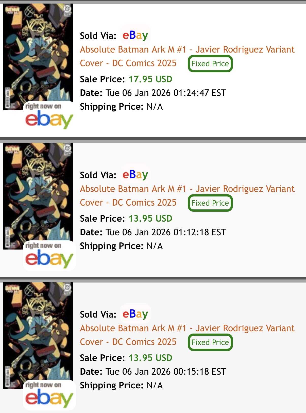 I’ve sold a bunch of absolute batman 1’s (cover a) and am sitting on more. I’ve been listing them individually, basically after one sells I list another.