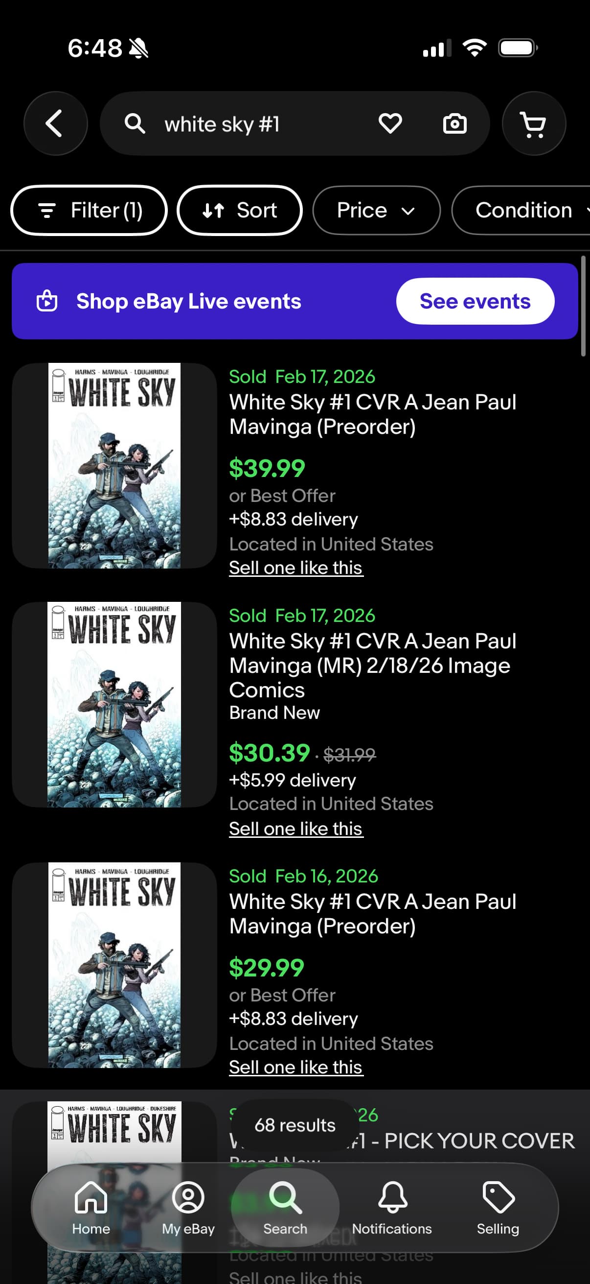 White Sky #1 already looks to be selling for above cover and barely any on eBay. If you didn’t pre-order, keep an eye out on Wednesday.