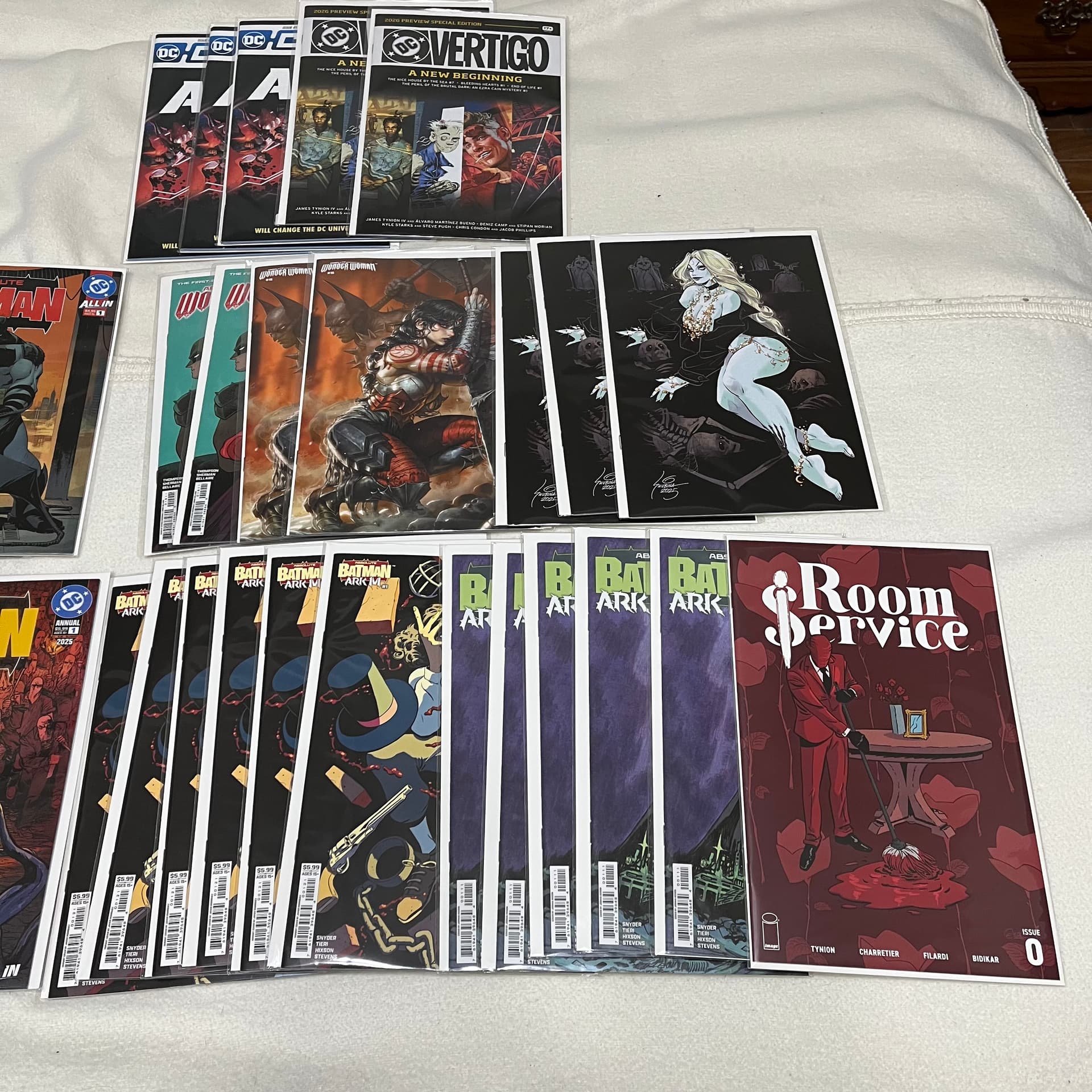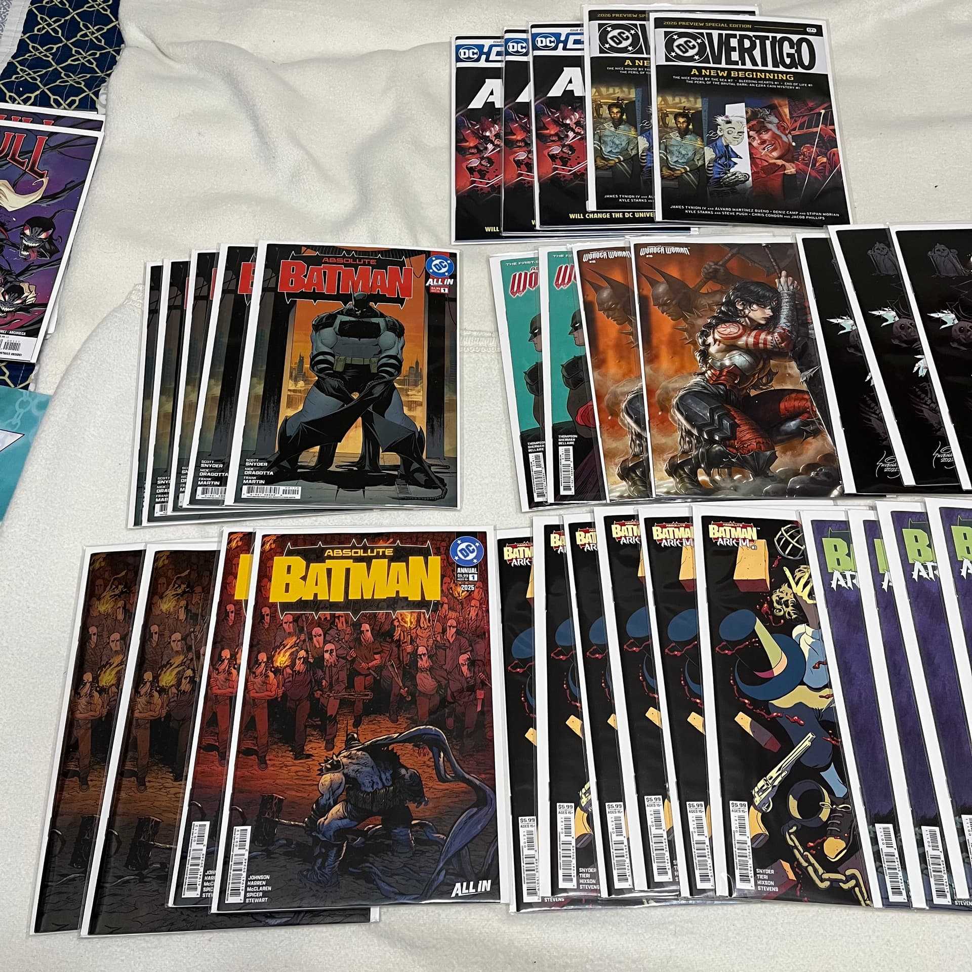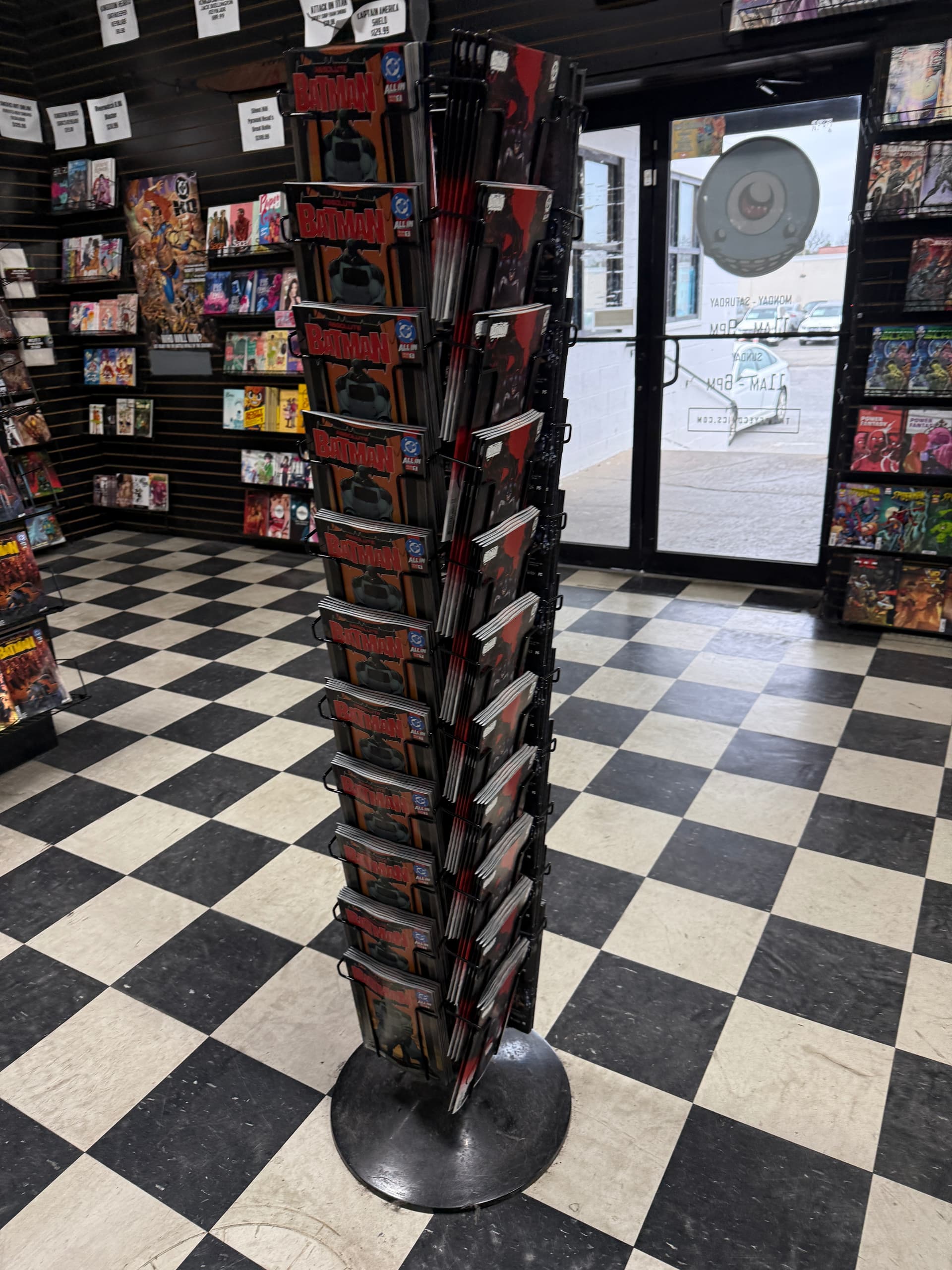 Some on the shelf. Some on the new comic wall. Some on the Absolute Comics endcap and some on a dedicated spinner rack.