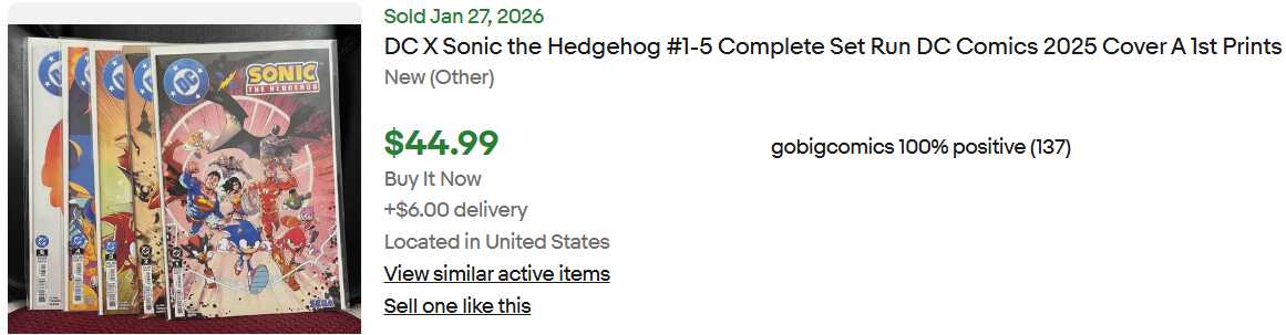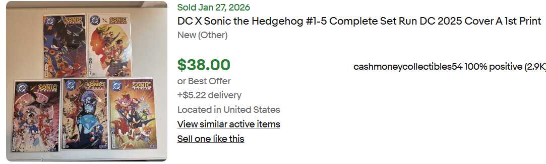 If you got them sets of DC X Sonic the Hedgehog Cover A’s you might want to list. You can get $35-$49 for them. Sold 1 of my 2 sets yesterday.
