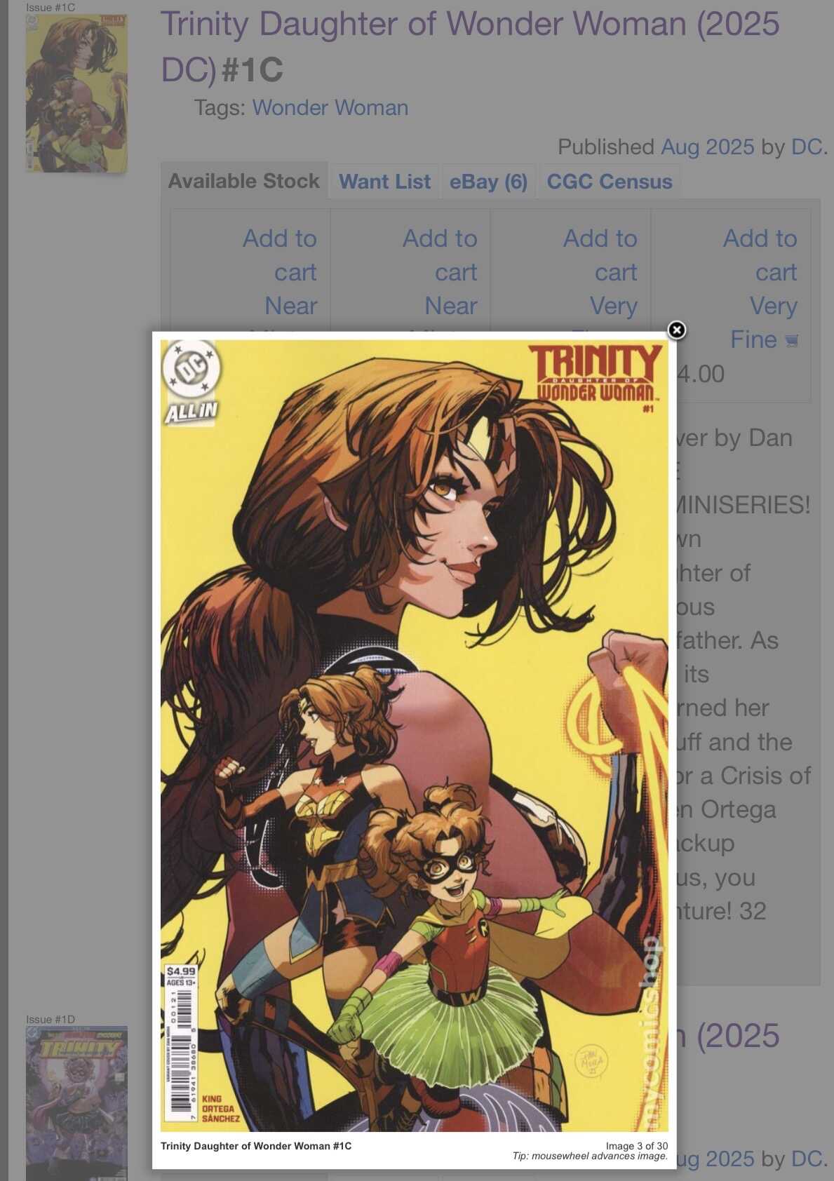 With Trinity taking the Spotlight in Wonder Woman series vs. Matriarch, she’ll get some renewed interest. Her 1st app was heavily spec’ed on so random covers like this could be the ones that benefit.