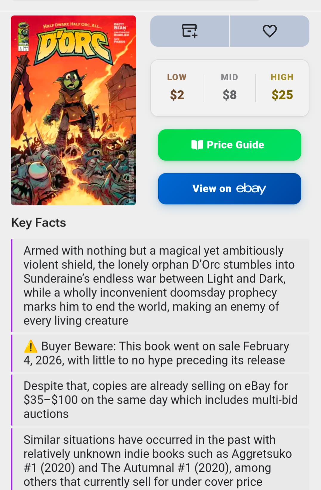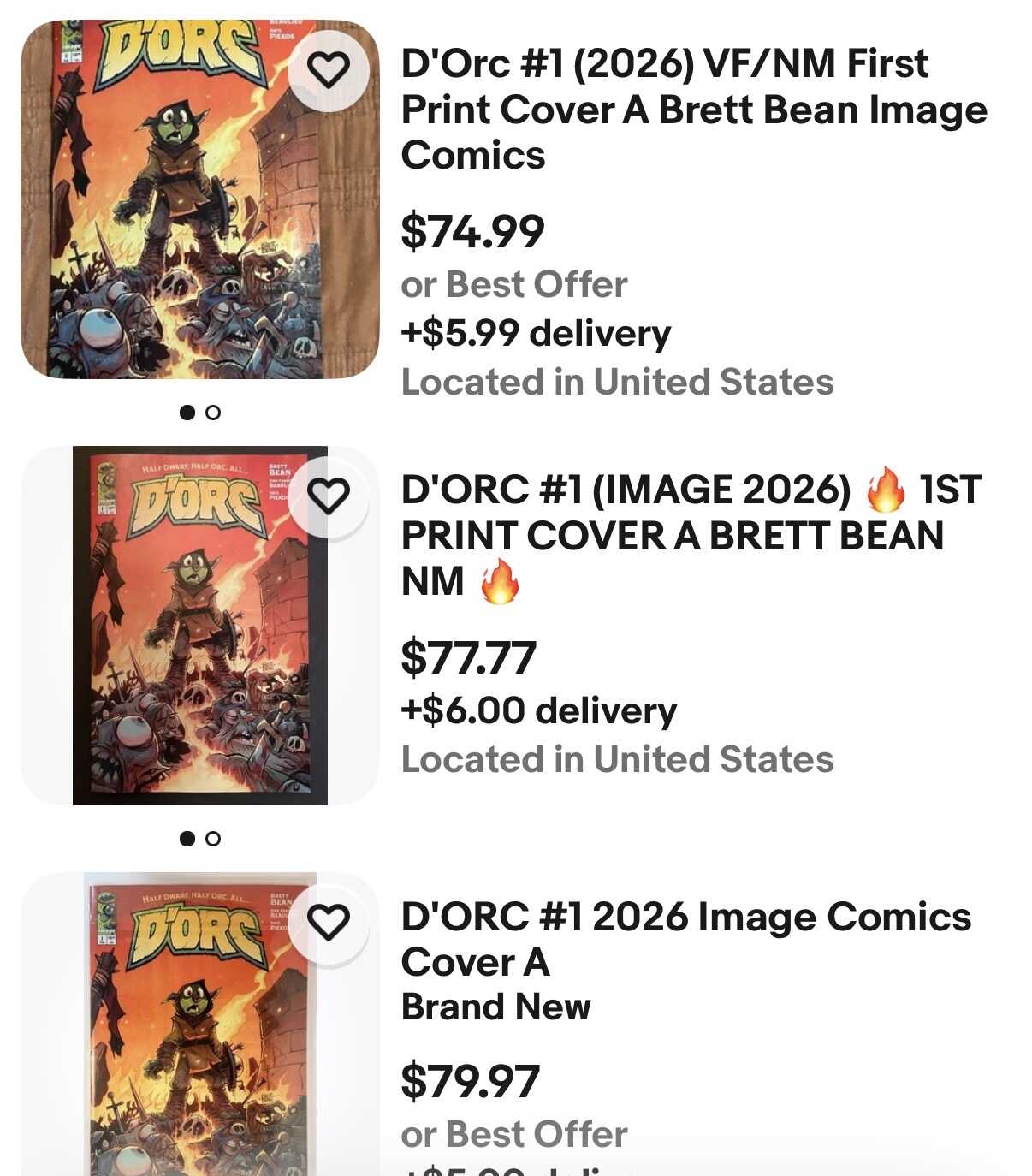 Very few people are preselling the 2nd print of D’Orc on Ebay. Looking at similar “hot” indy books that had second prints like Canto, Beneath the Trees, Stray Dogs, etc. The 2nd print popped up in the $20+ range before settling back down in the single digits. So these will be quick flips if you get them.