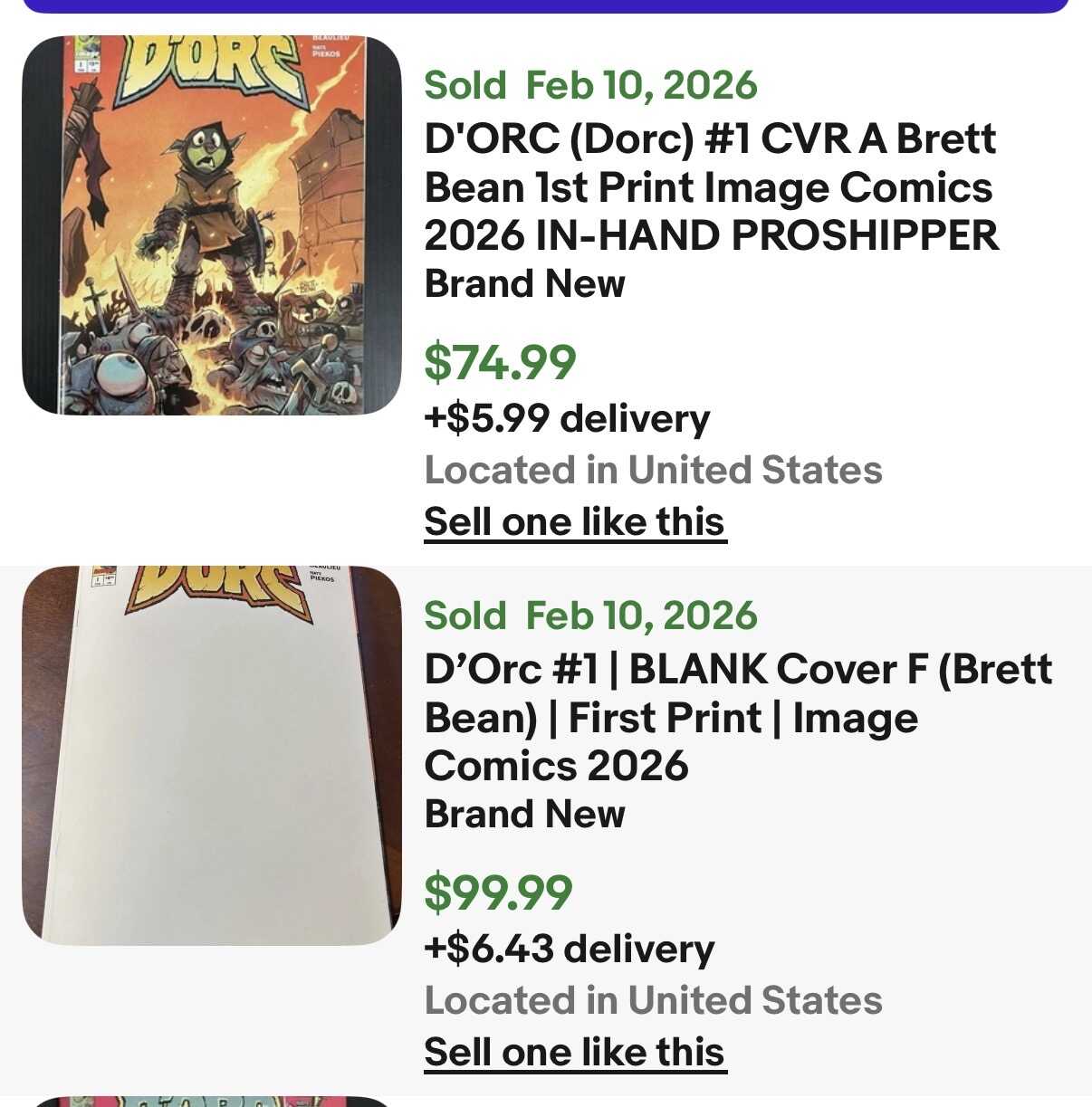 Picked up my first issue of D’Orc that my shop was holding for me. Listed it on eBay for $80 before I went into another nearby store to get some groceries and it sold before I checked out. Wow!