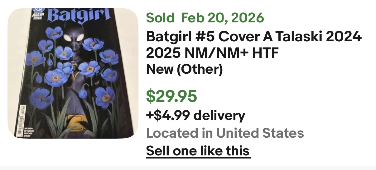 I’ve been selling Batgirl 5s left and right. That Black cove is tough to find in high grade. Sold a lot of 1-4 as well.