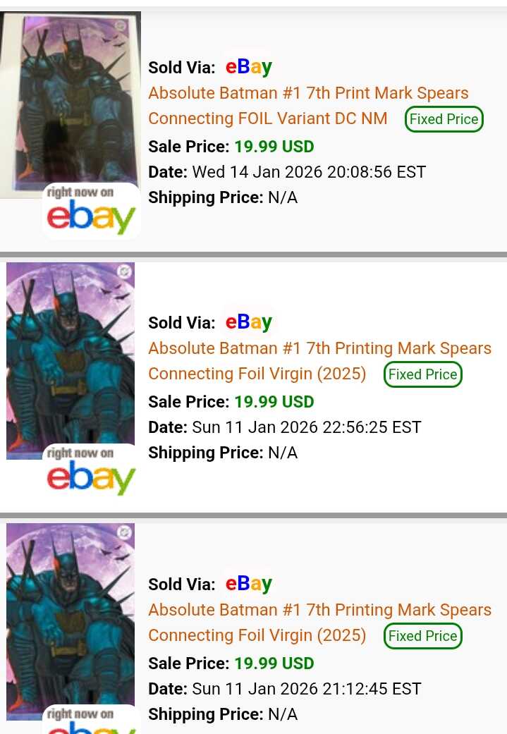 I don’t have the hot books in large quantities to sell like you guys, but I did sell AB 1 second print cover A and AB 1 3rd print foil so far this year. I sold a couple of IDW GI Joe 217 Stormshadow figure variants for $125 each. Most of my sales so far have been toys on eBay. I’m close to $1k in sales so far so I can’t complain. Good start to the year selling on eBay for me. I’m going to list some Campbell slabs on Friday so we’ll see how the slab route goes.