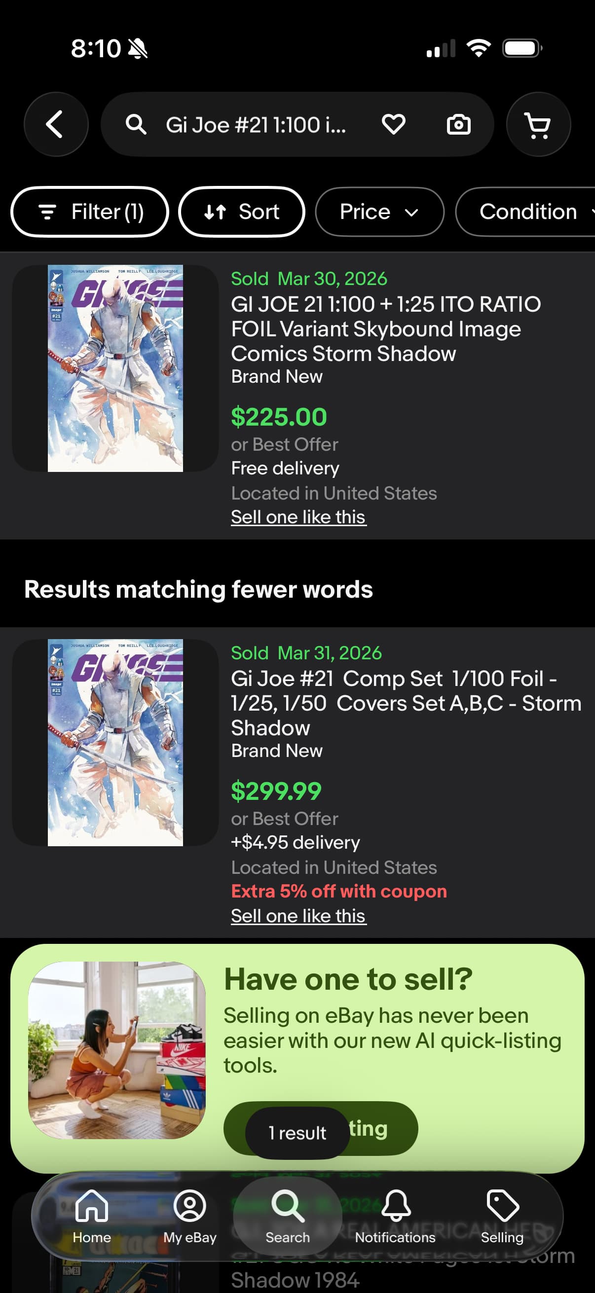 2 copies of #1 sold today for 70 and 100.