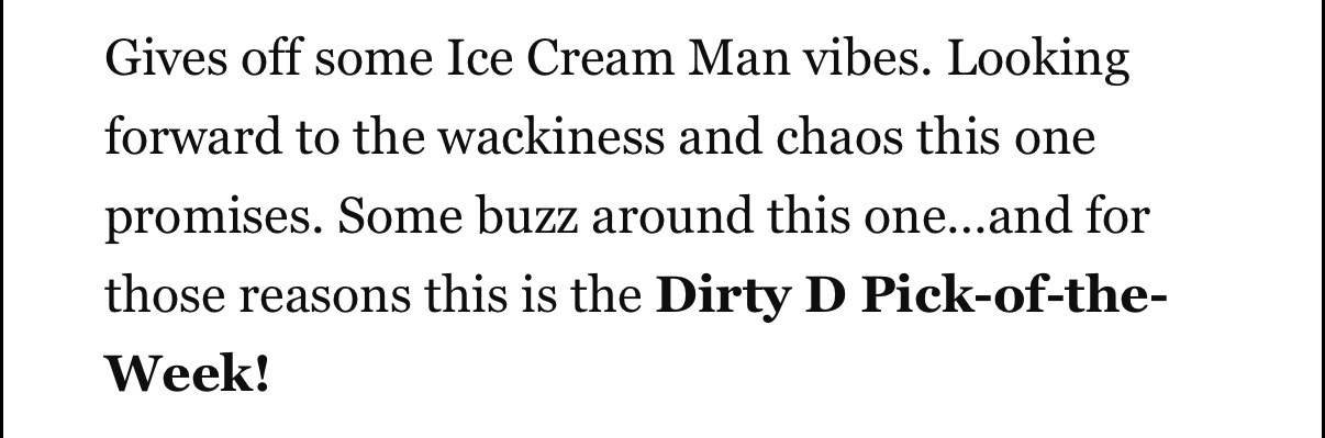 Dirty D’s Pick-of-the-Week back on 2/16!
