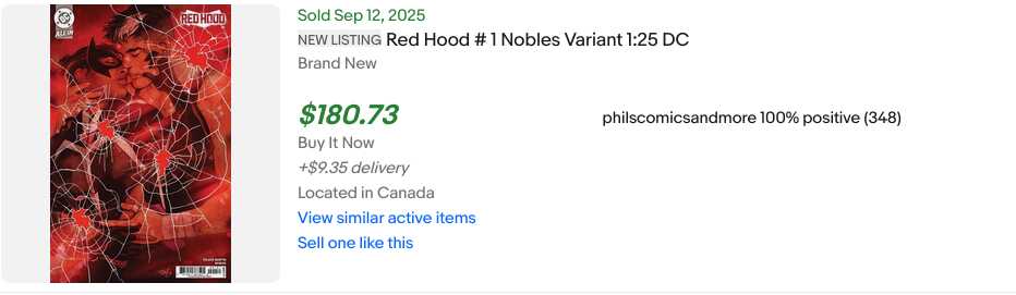 Glad I purchased the Red Hood #1 Jim Lee virgin variant this week. Sold for $260ā¦