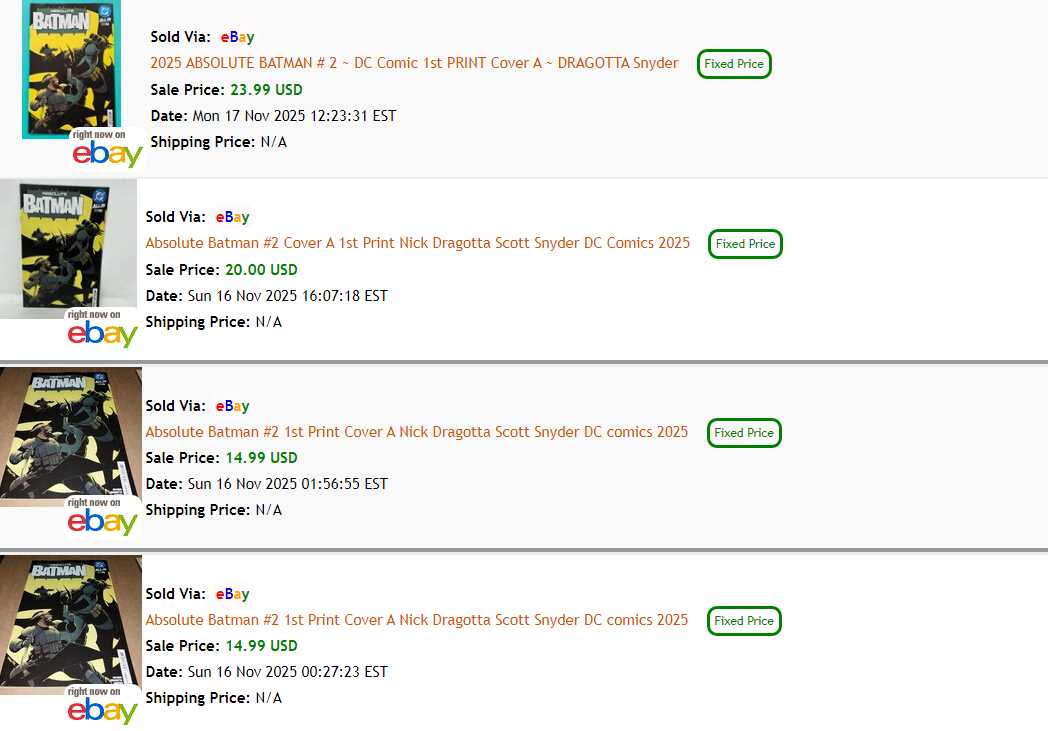 I think at this point when I find Absolute Batman 1st prints Cover A under issue 10, I am buying, AB #2 is starting to move in a very positive direction