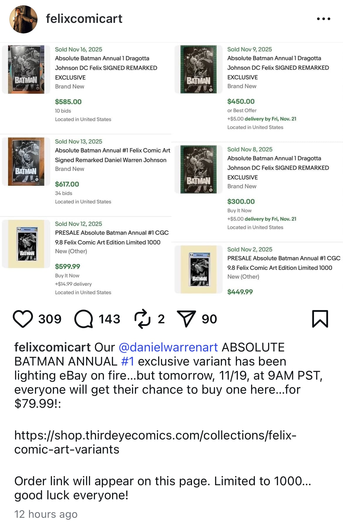 Honestly though… Absolute Batman is the most popular thing in comics in several years and DWJ is one of the most popular creators at the moment. It’s plausible there were 1000 people that bought it just now.