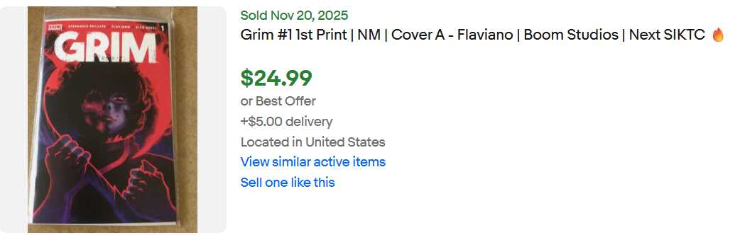 Stoked that I sold some copies of Grim. I still have some foils and foc variants to unload. I have sold so many of these in the past when they were hot. Made my money already and had the leftovers listed for a while for cover price just to unload the rest. No bites so I took them down. Now they’re hot again and I’m selling them for what they were when they were hot years ago. Love it.