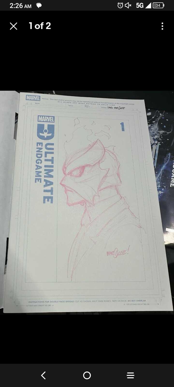 A colored-in Spidey head sketch as pulled at my LCS sister location. The artist signature is JDC not sure who that is.