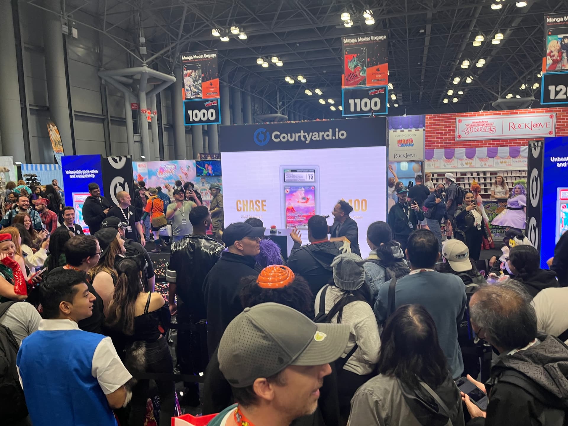 Here’s a guy winning a 10 Charzard chase (valued at $400)….crowd went nuts. It’s probably the biggest hit of the show.