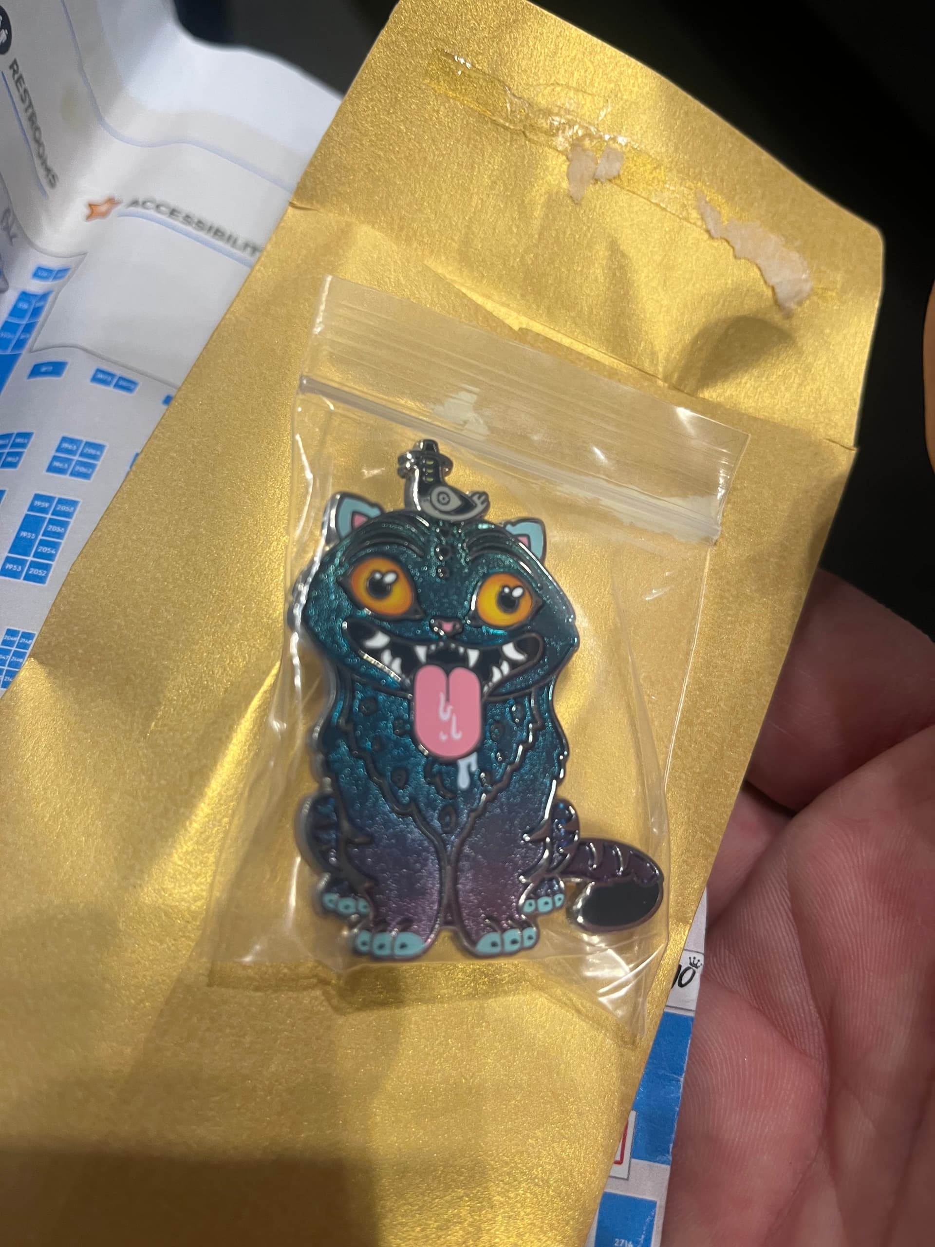 Because my kids are into K-Pop demon hunters, and the booth was nearby, I grabbed a couple exclusive glow in the dark pins of Derp and Sussie. Of all the characters, those two crack me up. $15 each.