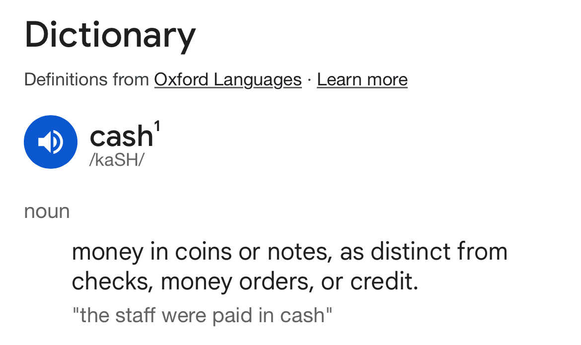 I don’t consider electronic funds “cash”….cash is cash…physical paper bills…