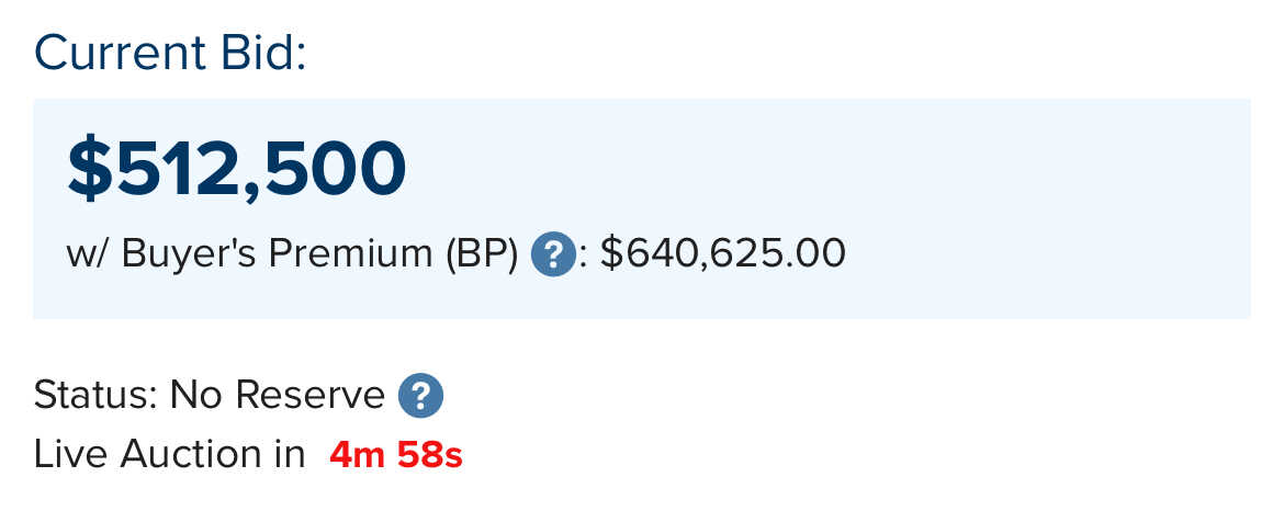 Oh sorry, let me clarify. I donāt count the premium tacked on at the end⦠yes, they would pay that but the actual value for me is what they bid on. Like if I went to go bid on this to try and win and won it at the next minimum bid required at $525,000.00 and I won, to me this would be worth $525,000.00.