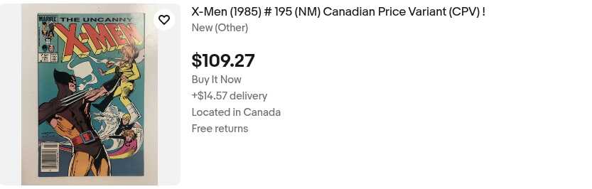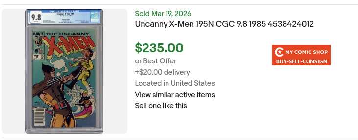 Trying to check the price on some of them. I don’t see any listings or current sales on this UXM 195 CPV in a cgc 9.8. There’s a listing for a NM raw copy that someone is trying to fish for $100