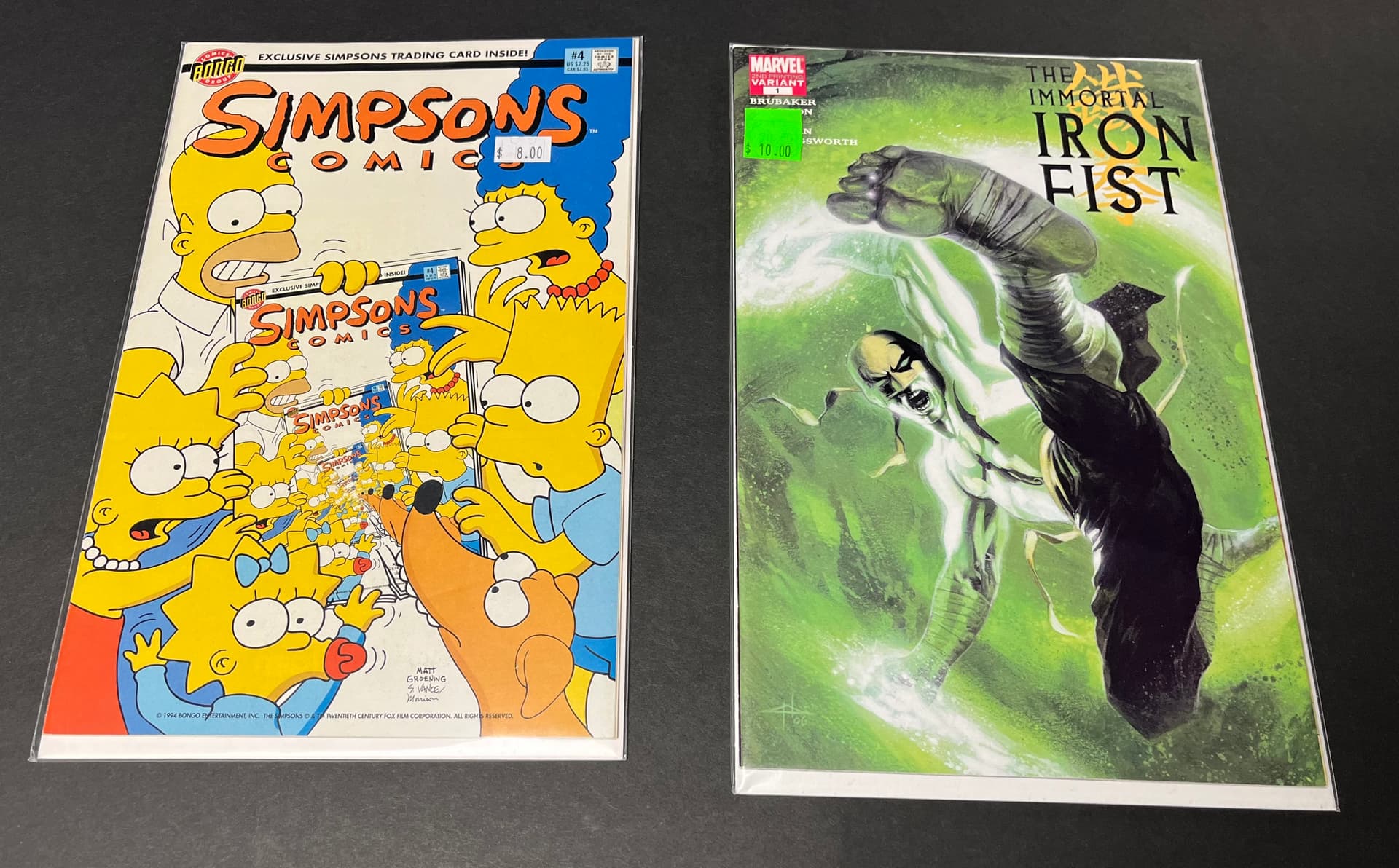 Simpsons has the card insert. And looks to be in great shape ($8). The Iron Fist is a second print del Otto cover. It used to command a premium during the COVID boom and reprint phase…finally has come down in price (&10).