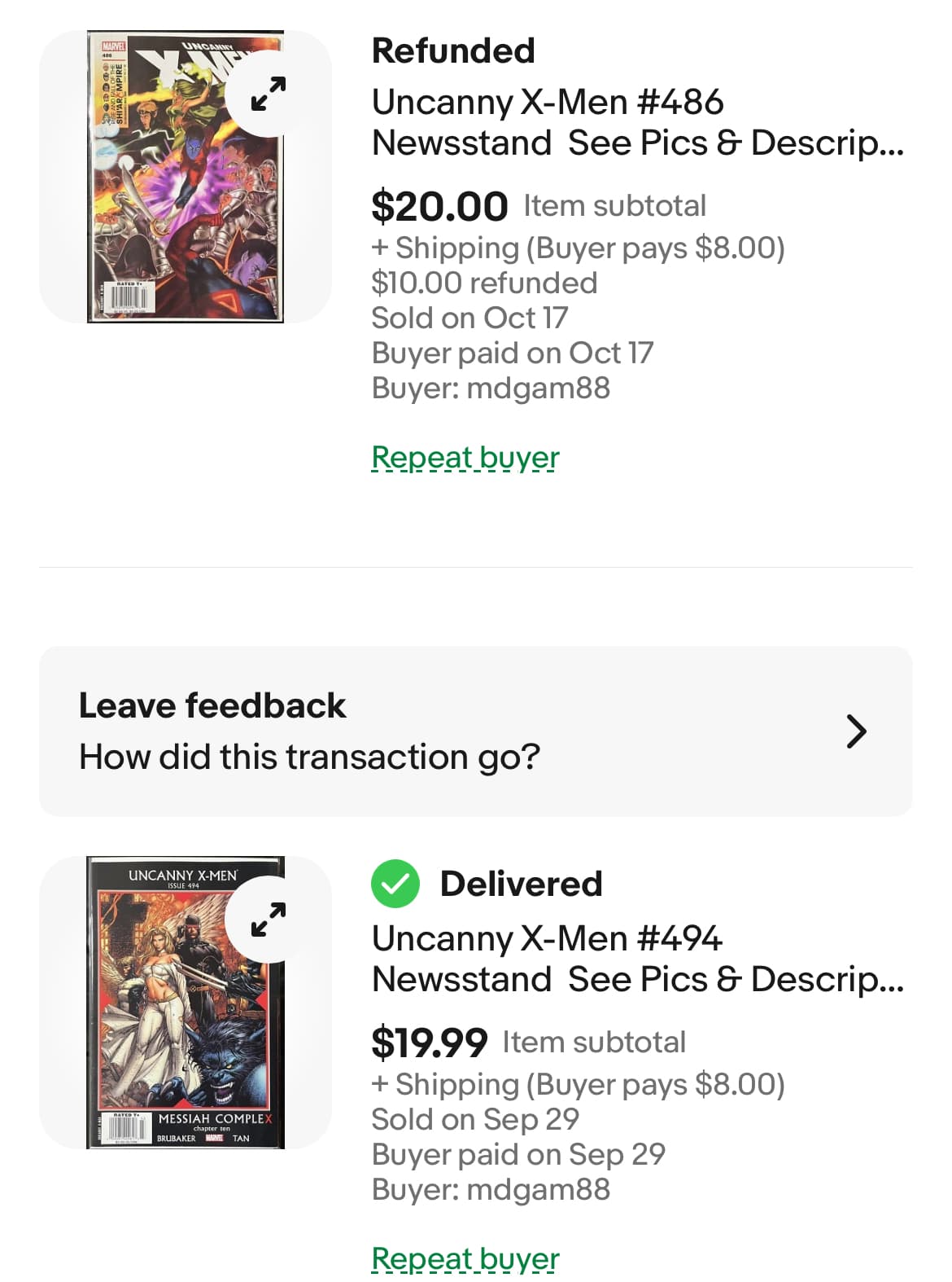 My most recent sales. Any refunds were in shipping as they never requested combined shipping, or a refund in shipping. I will always refund shipping if the buyer overpays whether they ask or not.
