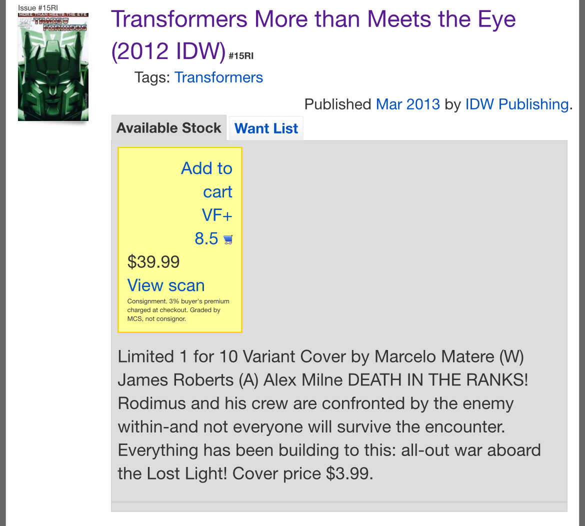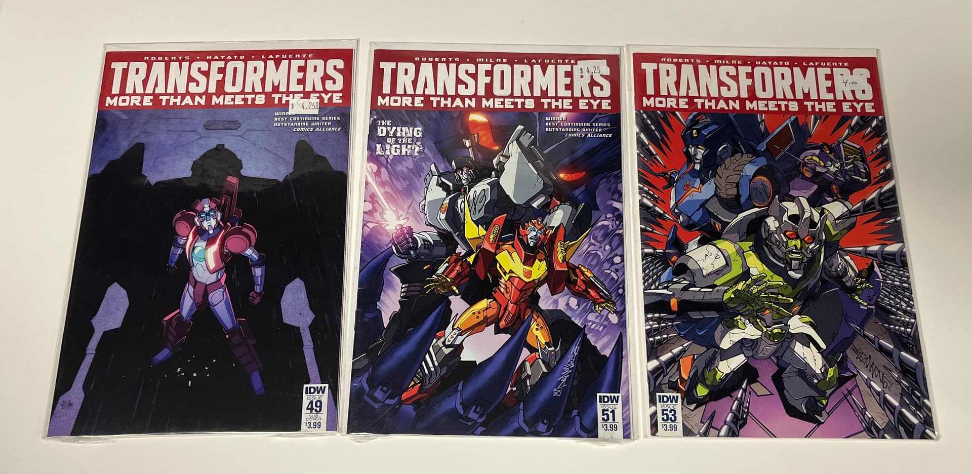 But I can tell you all of Lost Light and the later issues on the More than Meets the Eye runs are creeping up.