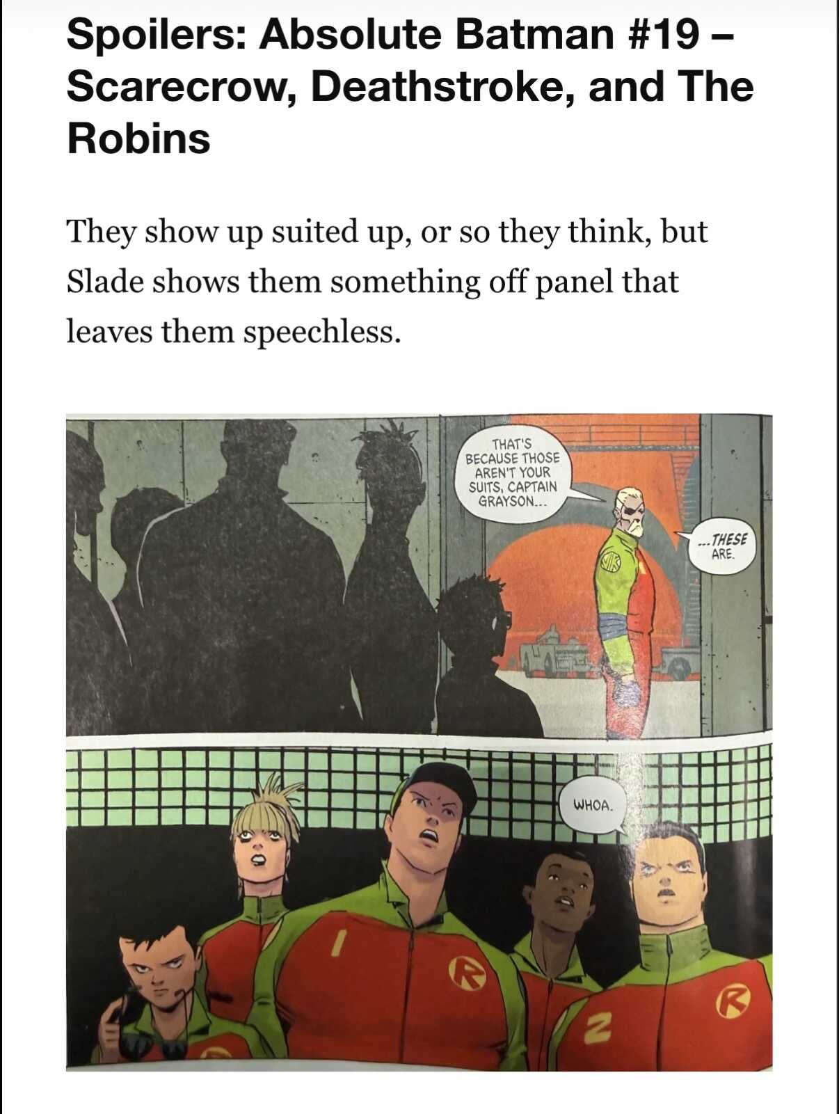 It’s just rare that a comic end w/o a splash page and reveal. So that through me off as there was no mention of the robot suits up to that point.