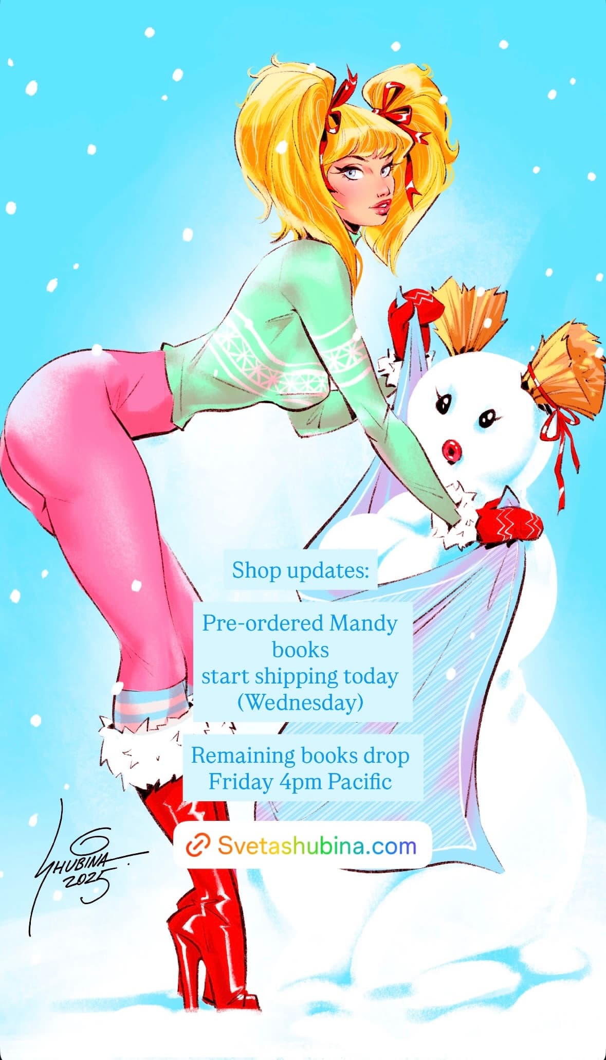 Mandy used to be a cartoon in Playboy drawn by Dean Yeagle. He used to show up to SDCC every year, but don’t know if he does anymore.